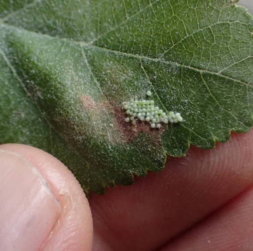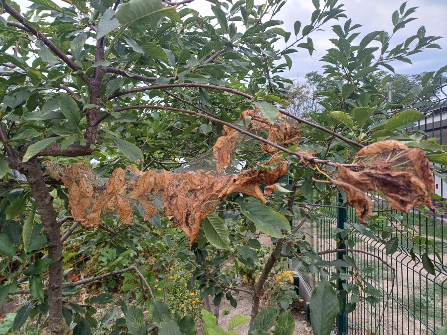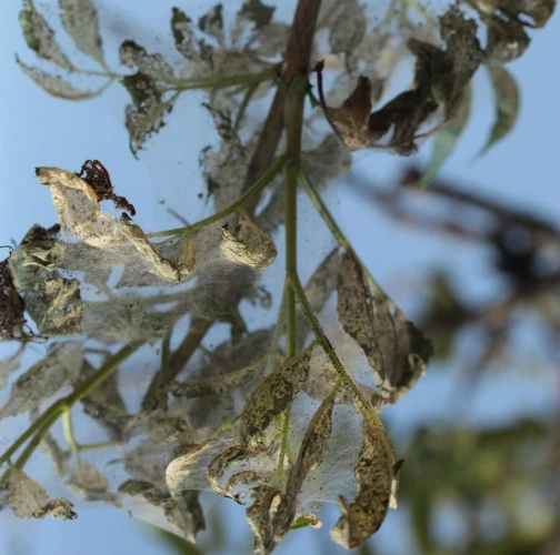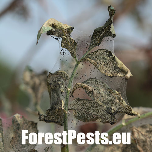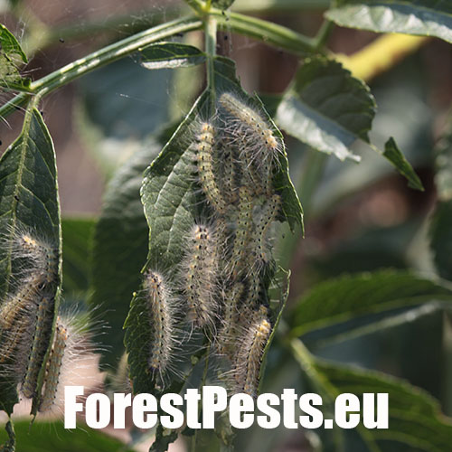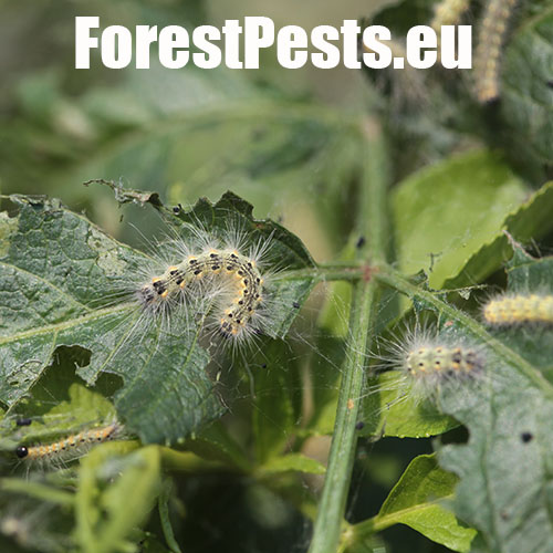 The adult fall webworm moth is bright white, with a hairy body. It builds impressive silk tents that sometimes enclose entire branches. Initially, the larvae skeletonize the leaves, and as they continue to feed, only the thicker veins remain intact. The larvae live gregariously at first, and then become solitary as they grow. Small larvae grow quickly and they spin whole twigs and branches into web-like fibres. They can grow up to 30-45 mm in length, and adult larvae have a darker stripe on their backs. The larvae frequently pupate together in bark cracks, and the pupae overwinter. The first generation of the moth swarms from April until May, while the second generation is active from August to September. The eggs are laid on leaves. This pest originally spread into Europe from the USA relatively recently, starting in the 1940s. The frequency of its occurrence has been increasing lately.