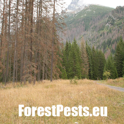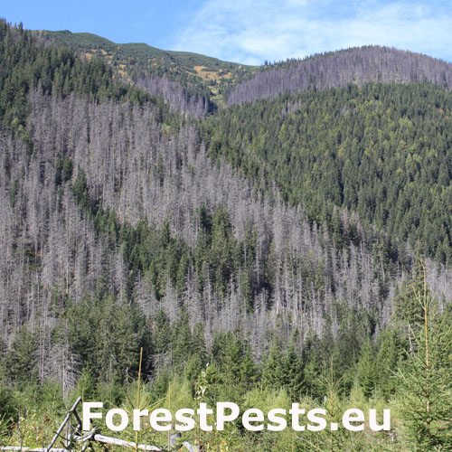 The adult has a cylindrical body of brownish black colour, 4.2–5.5 mm long. The elytra have a matte declivity at the end, with 4 spines on the edge. Adults overwinter in litter or under the bark. First, a male bores under bark. It is followed by 2–3 females boring a 6–12 cm long maternal gallery in the phloem parallel with the trunk axis. The hatched larvae mine their feeding tunnels at a right angle to the egg gallery. It has one, two, or three generations per year. Most at risk are spruce stands aged 60 plus, affected by wind and snowbreak damage or weakened by drought. The beetles damage spruce canopies also with their adult feeding, mining antler-shaped galleries in the phloem. It infests mainly lower and middle parts of stems. It is one of the most serious pests of Norway spruce in Europe.