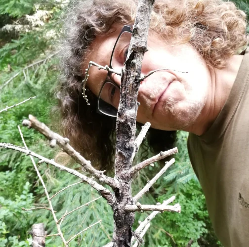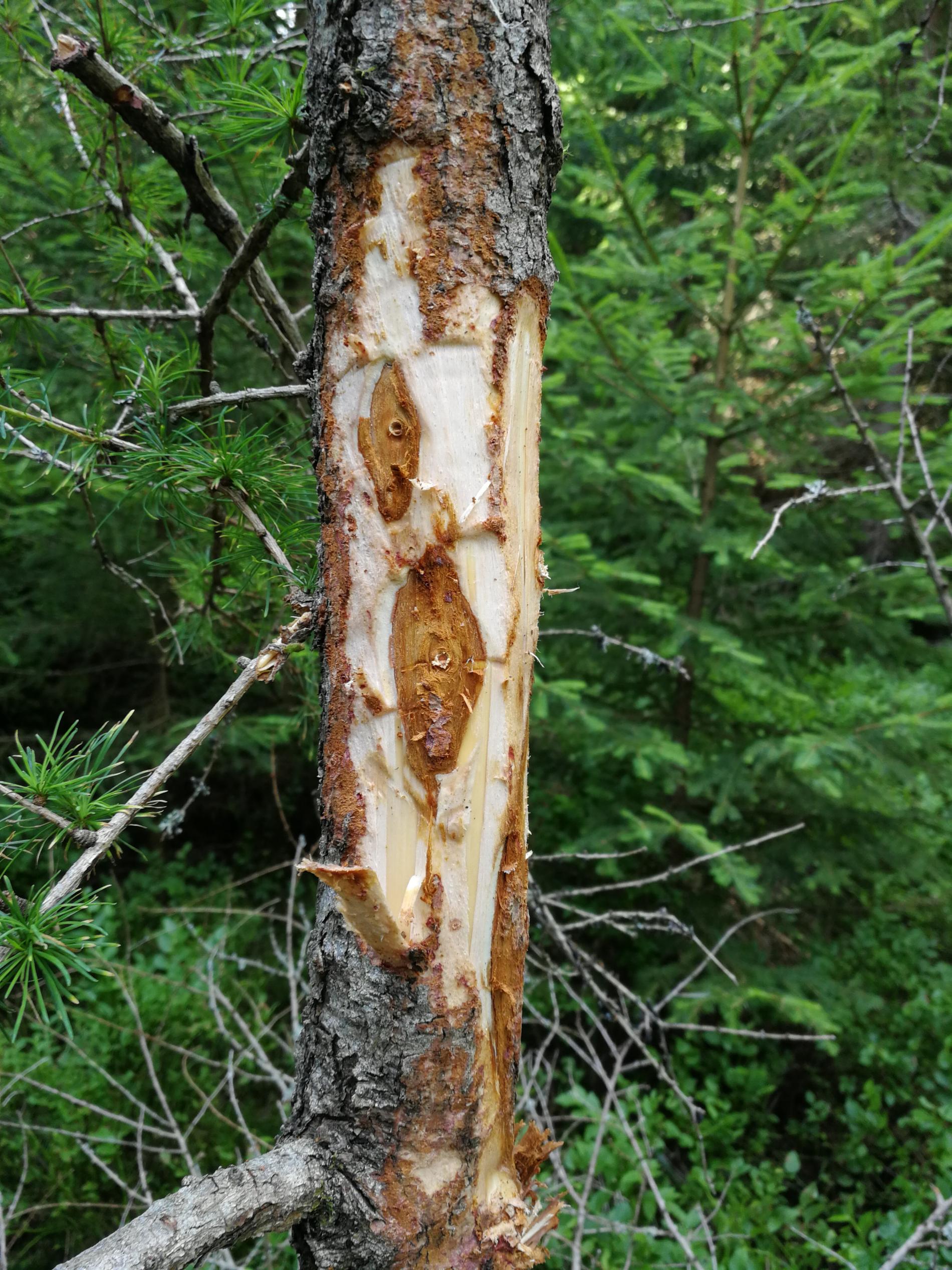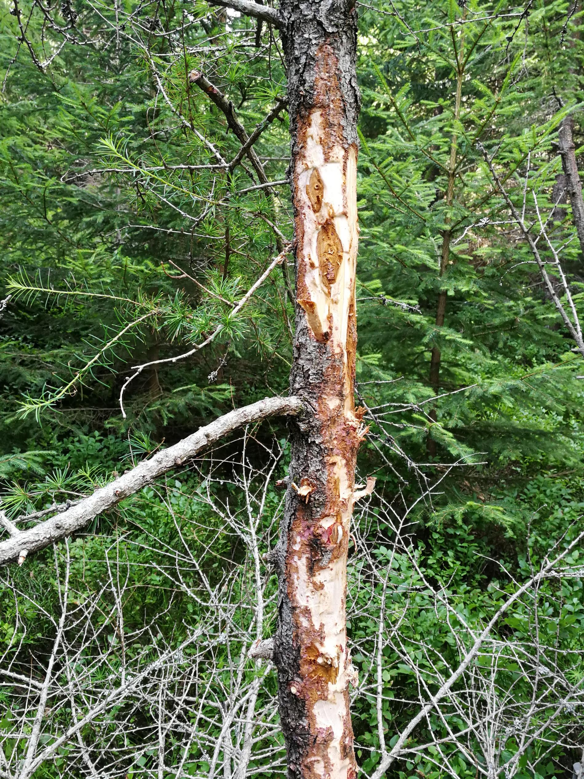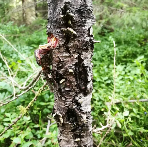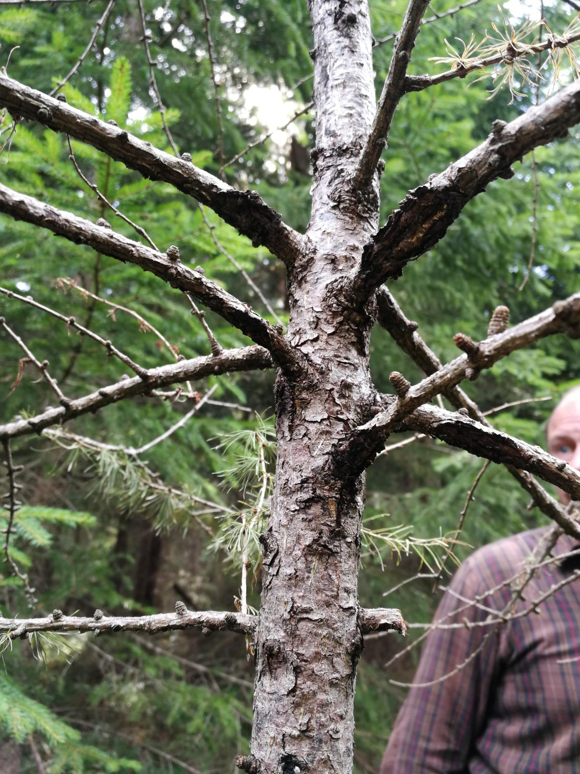 The fungus causes canker in larch. The infection enters a tree through physical bark injuries or by aphid sucking which results in microscopic wounds and deterioration of bark elasticity. The bark becomes sunken at the infection site. Tree defense mechanisms trigger callusing around bark necroses and thus the stem or twig is soon deformed. After time, the infection site can be covered with saucer-shaped fruiting bodies which are 1–4 mm in diameter, with yellowish or orange centres and white wool on the edges and underside. The disease occurs mostly in moist valleys with subdued air currents.