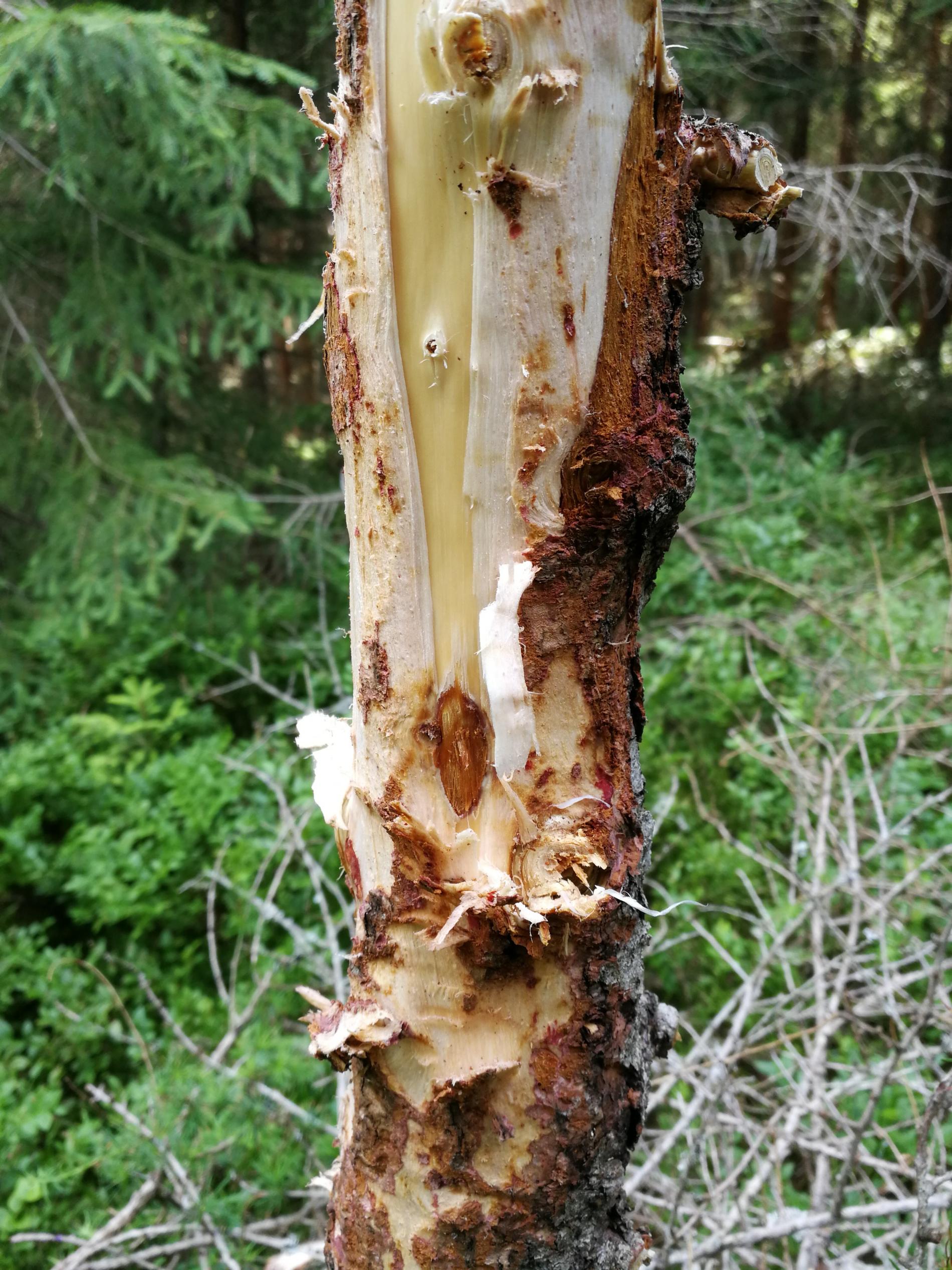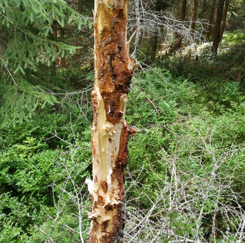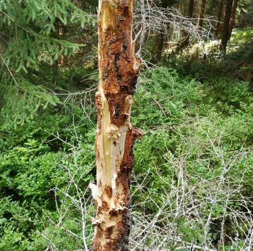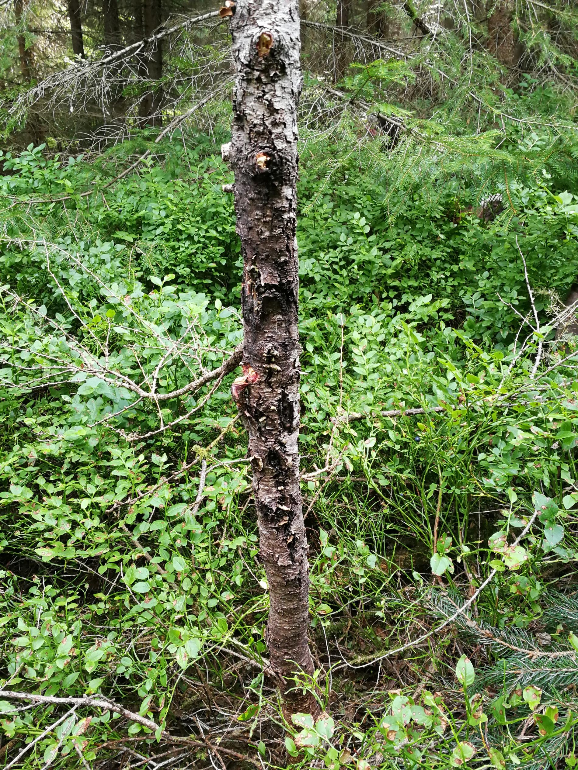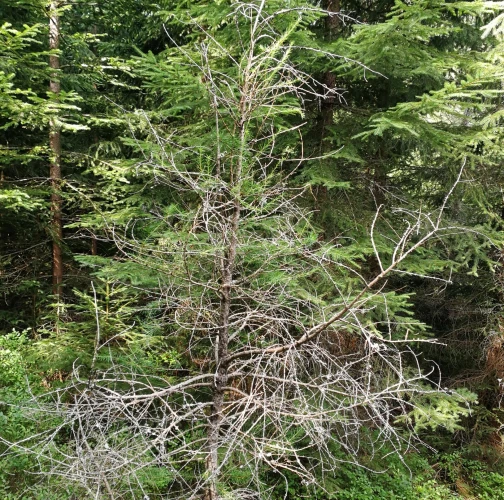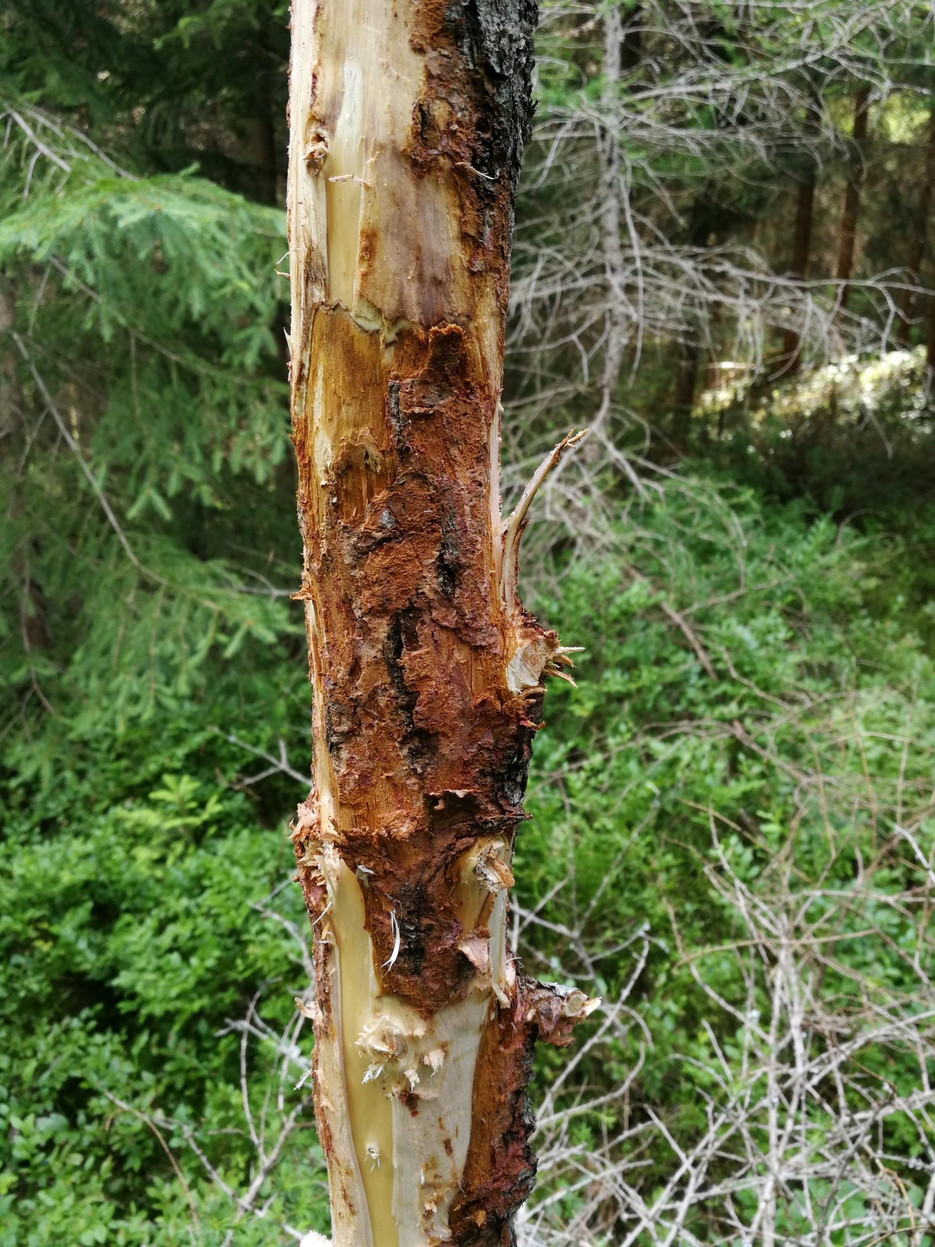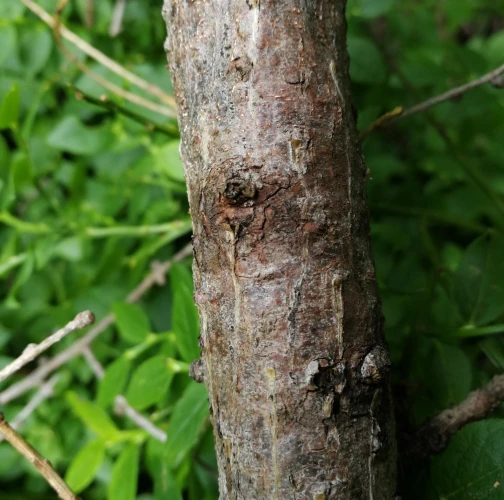 The fungus causes canker in larch. The infection enters a tree through physical bark injuries or by aphid sucking which results in microscopic wounds and deterioration of bark elasticity. The bark becomes sunken at the infection site. Tree defense mechanisms trigger callusing around bark necroses and thus the stem or twig is soon deformed. After time, the infection site can be covered with saucer-shaped fruiting bodies which are 1–4 mm in diameter, with yellowish or orange centres and white wool on the edges and underside. The disease occurs mostly in moist valleys with subdued air currents.