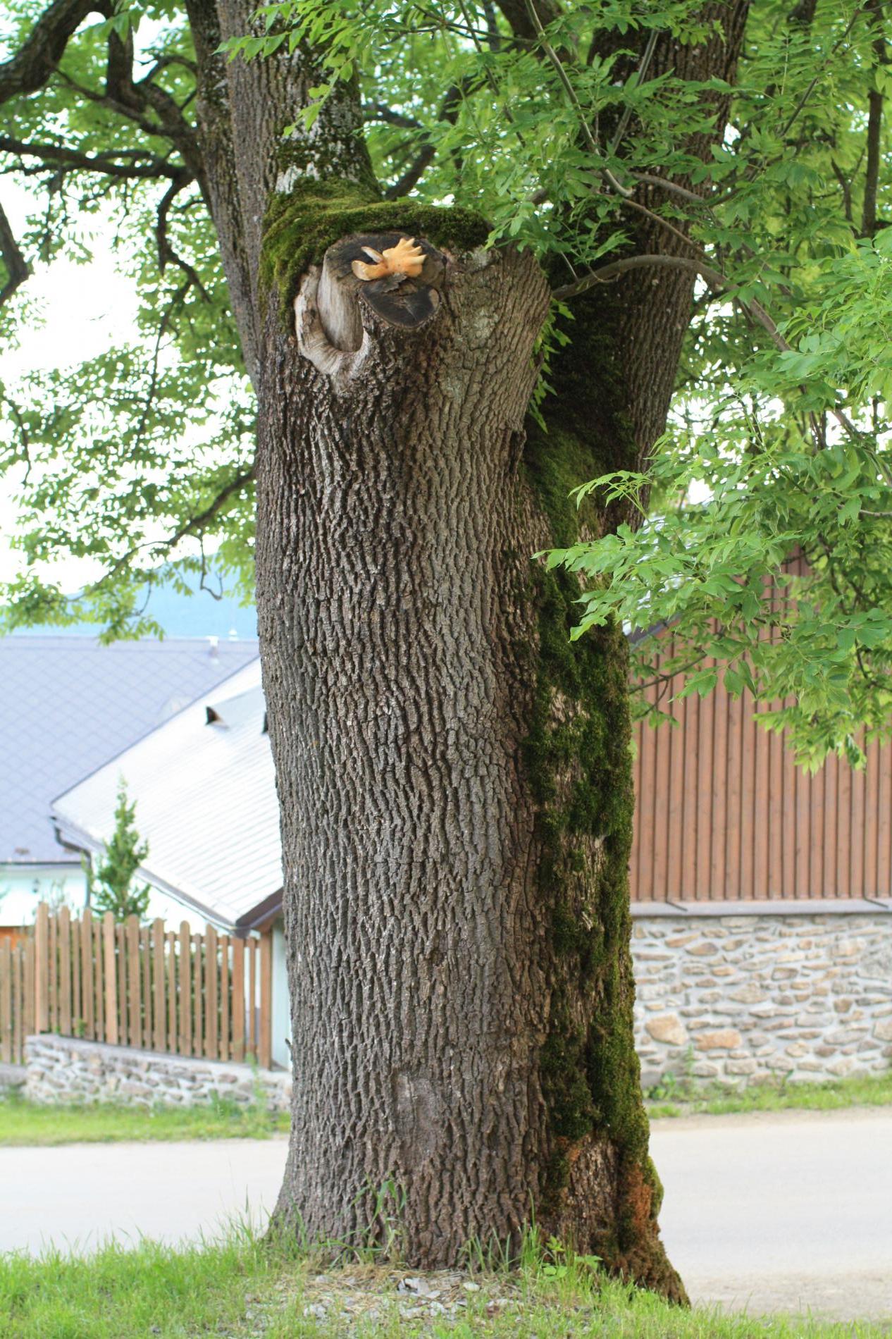Presence of yellow fruiting bodies on deciduous trees.