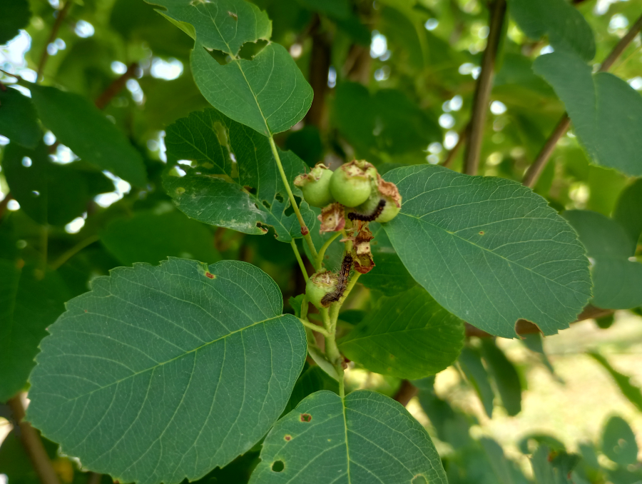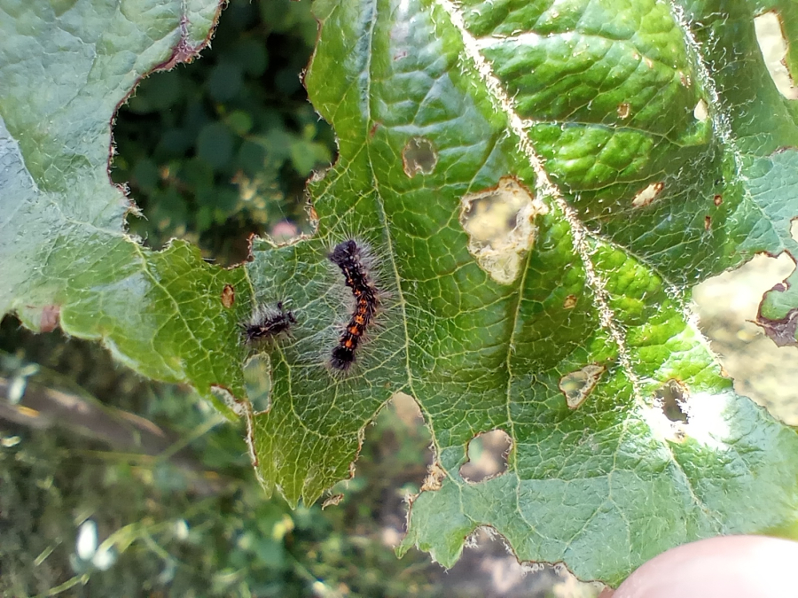 Defoliation of the leaves. Presence of hairy caterpillars.