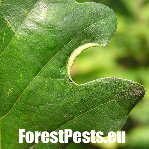 The gall is formed by a rolled leaf margin segment, situated between two lobes. Inside the fold lives the larva. Fully grown larvae leave galls, fall to the ground and enter the soil where they remain till the spring of the following year. One generation develops per year. It is common on all oak species, less common on Quercus cerris.