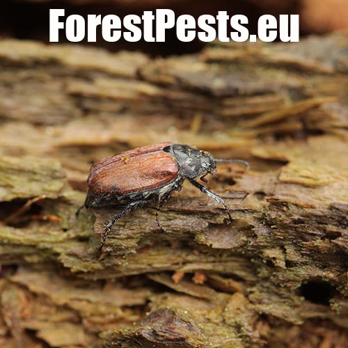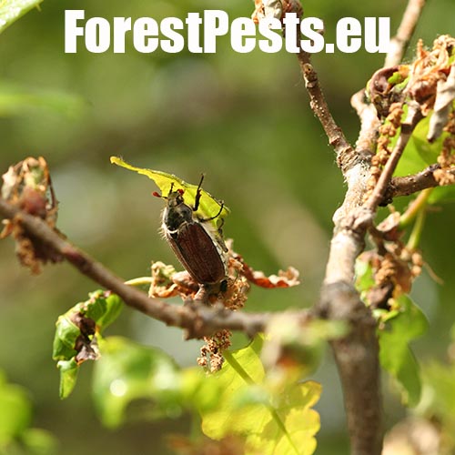 Large beetles on leaves. The end of the last segment of abdomen is rounded. Larvae damage to tree roots, especially pines.