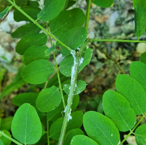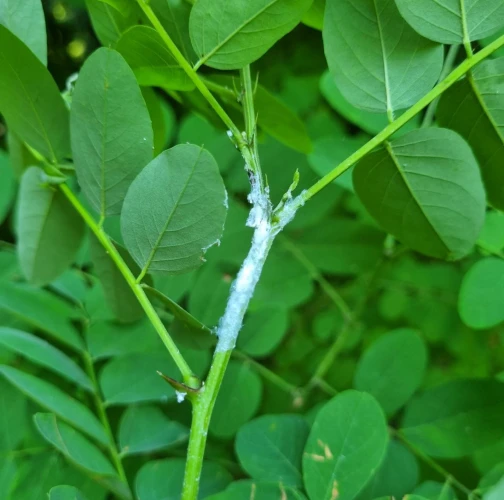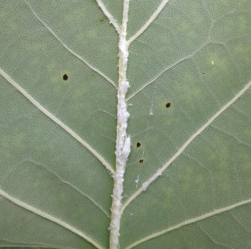 Adults, but especially larvae and nymphs, are covered with a white epicuticular wax.