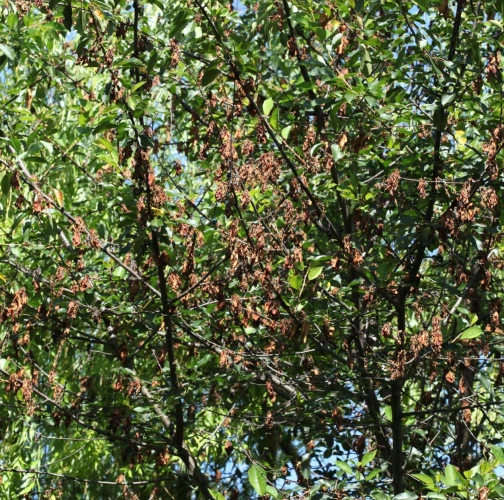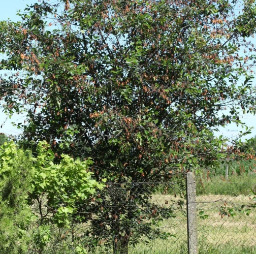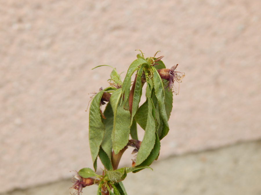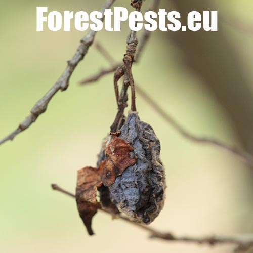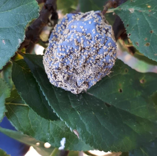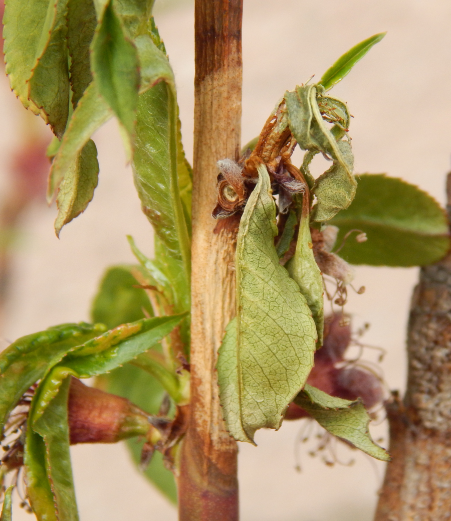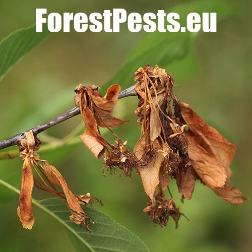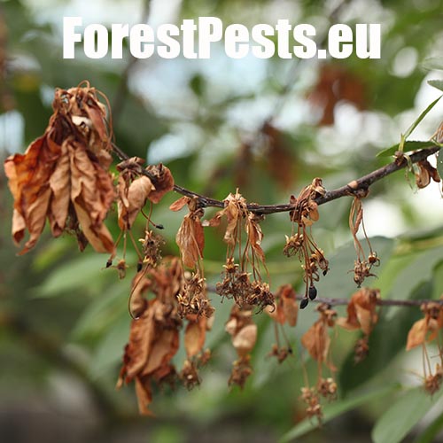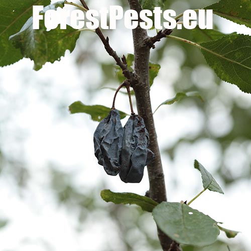 A glucose flow appears at the sites of the infected and healthy part of the shoots. The infested branches dry and the fruits fall off.