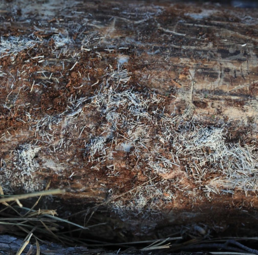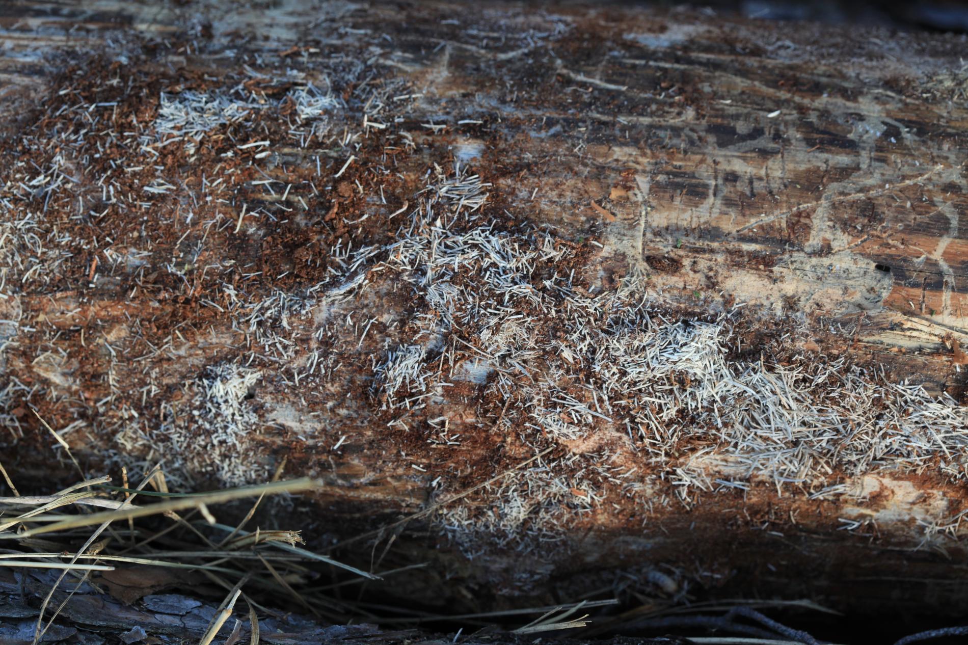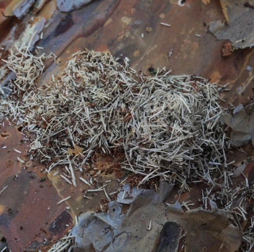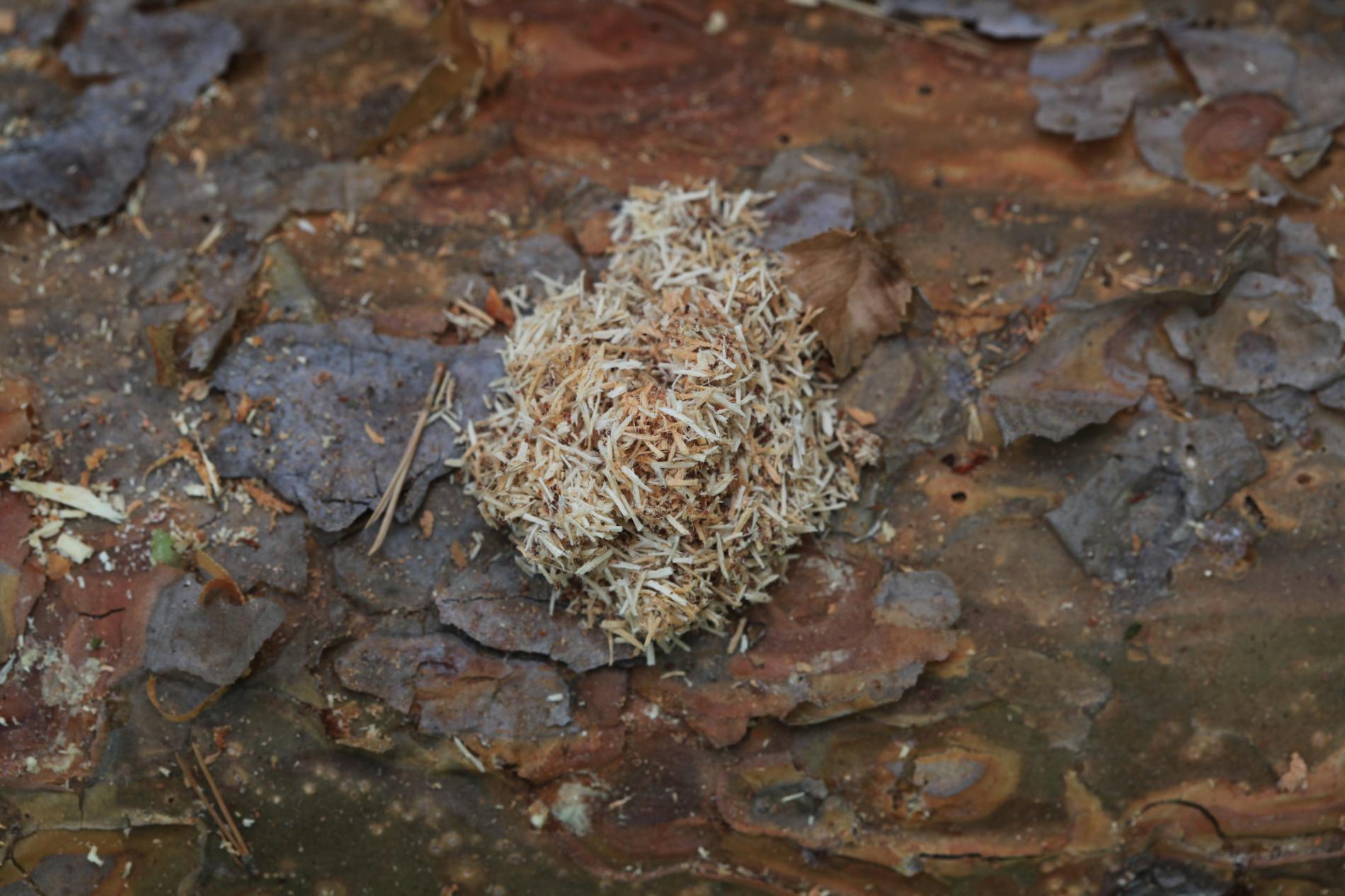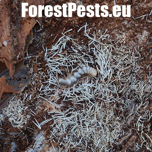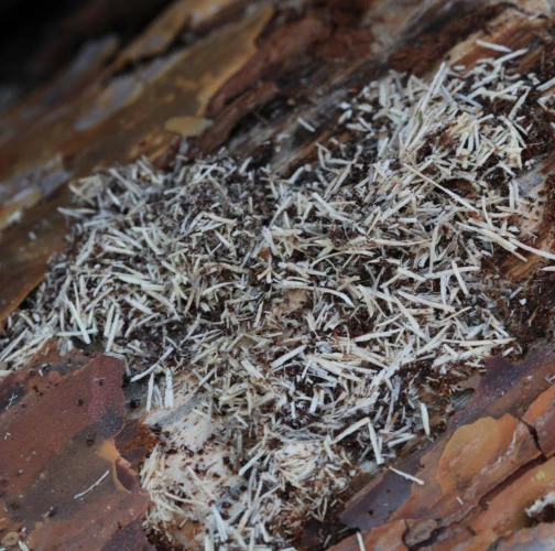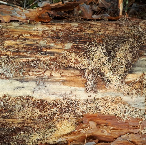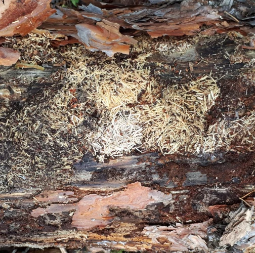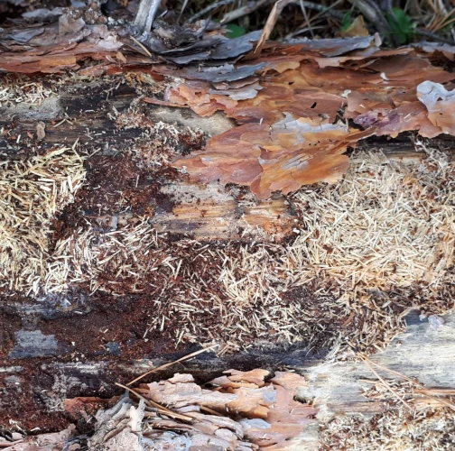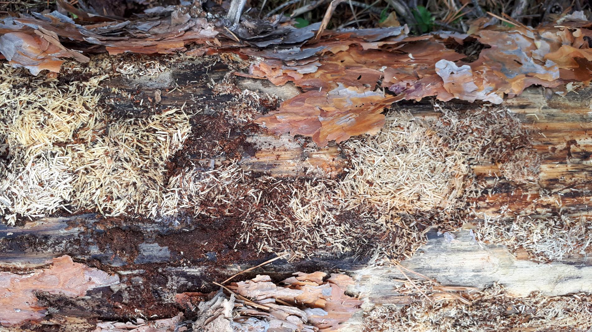 The scavengers under the bark are firmly clogged with small concentrically arranged chips.