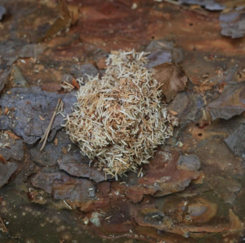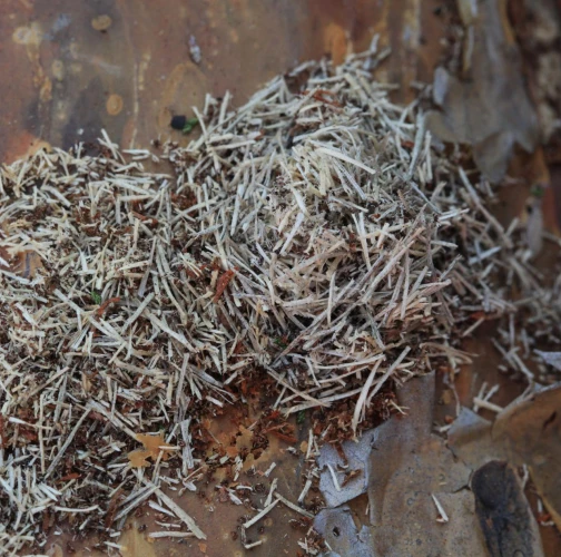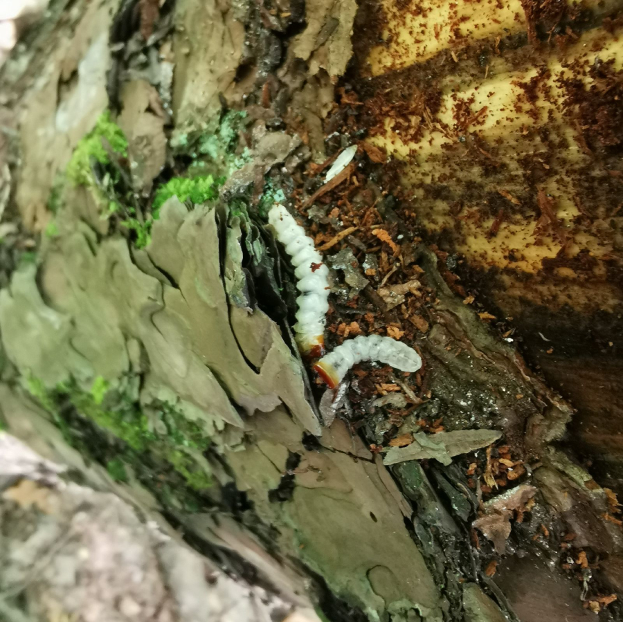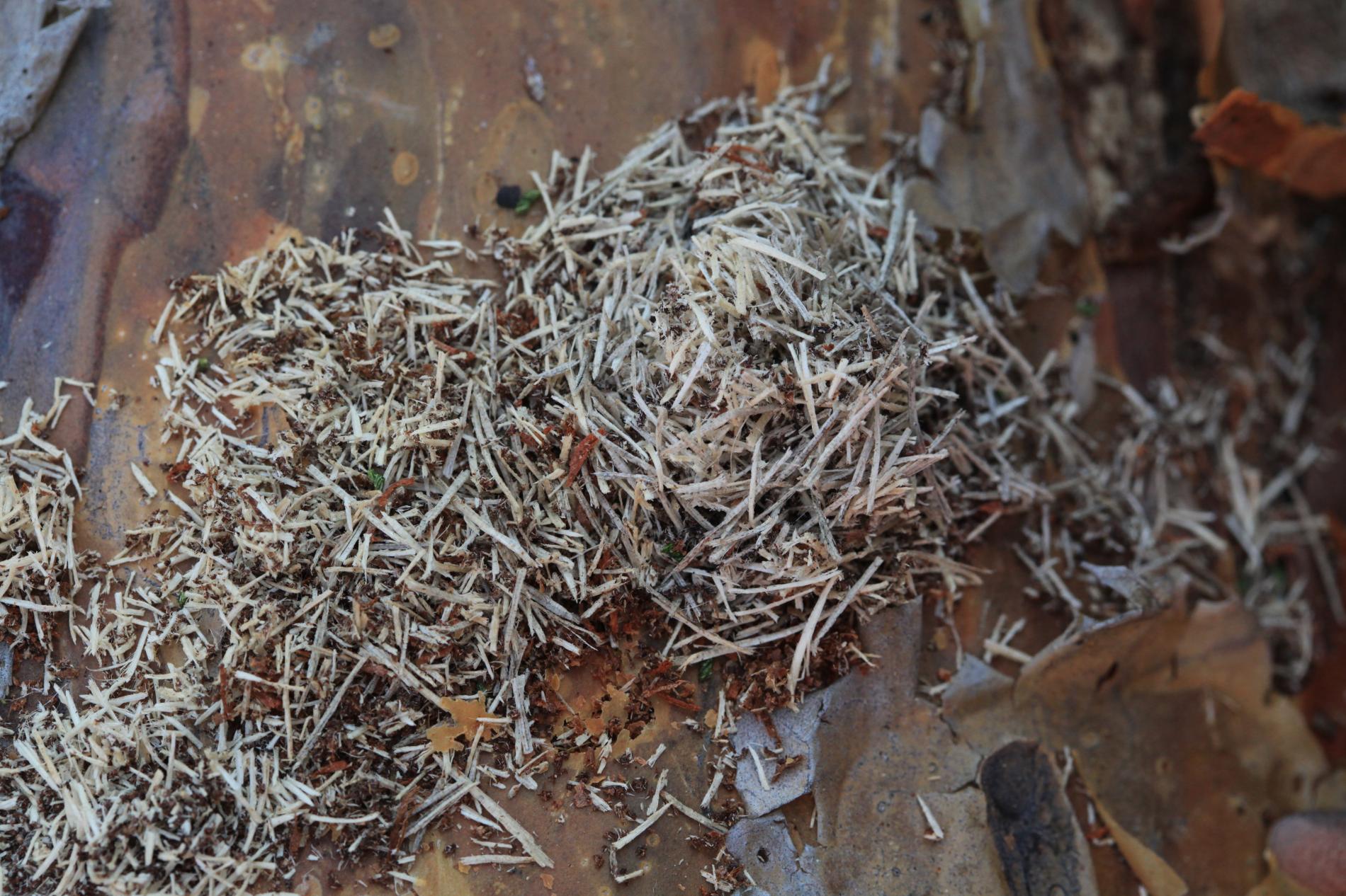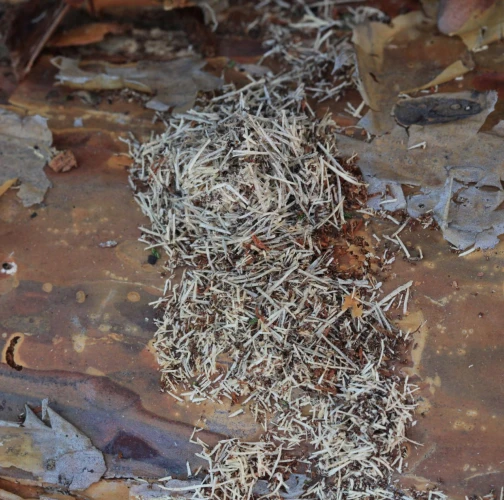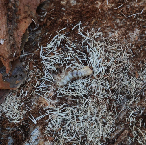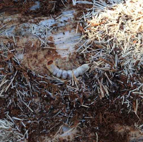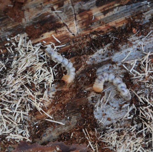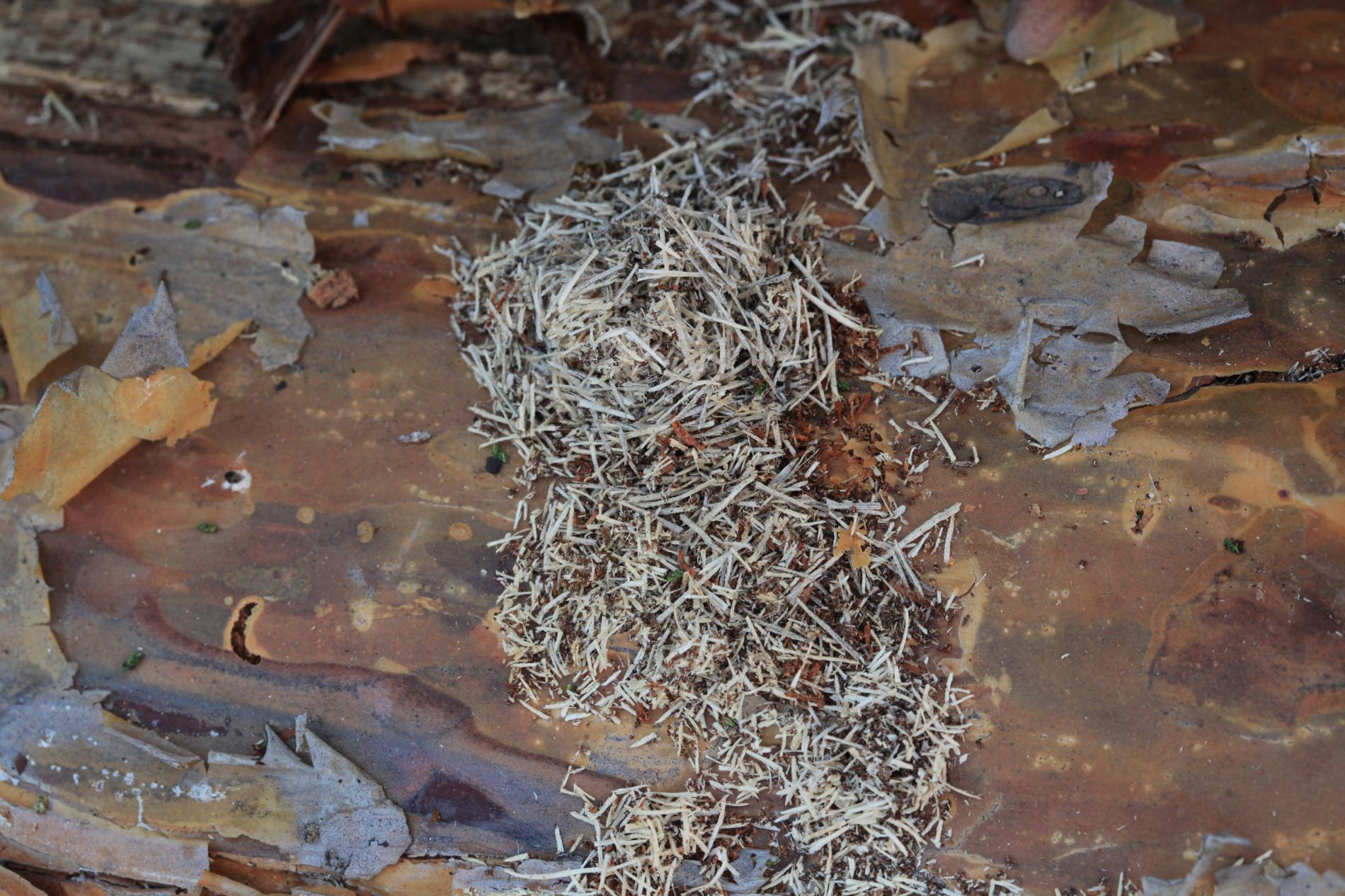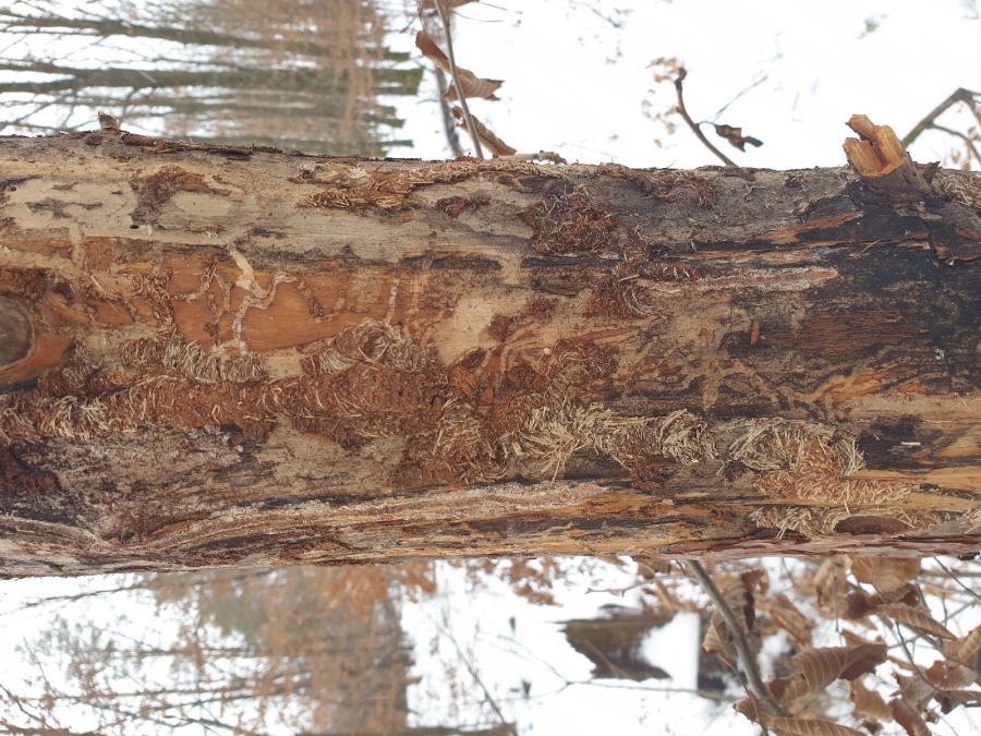 The scavengers under the bark are firmly clogged with small concentrically arranged chips.