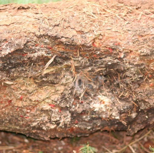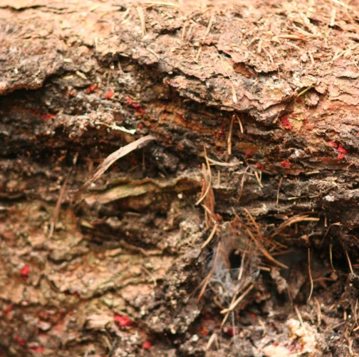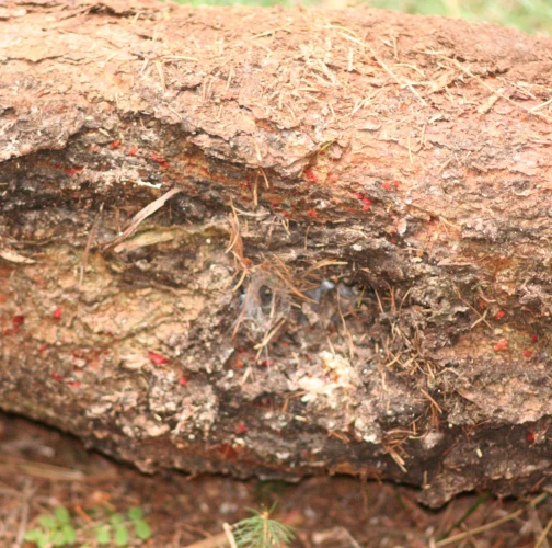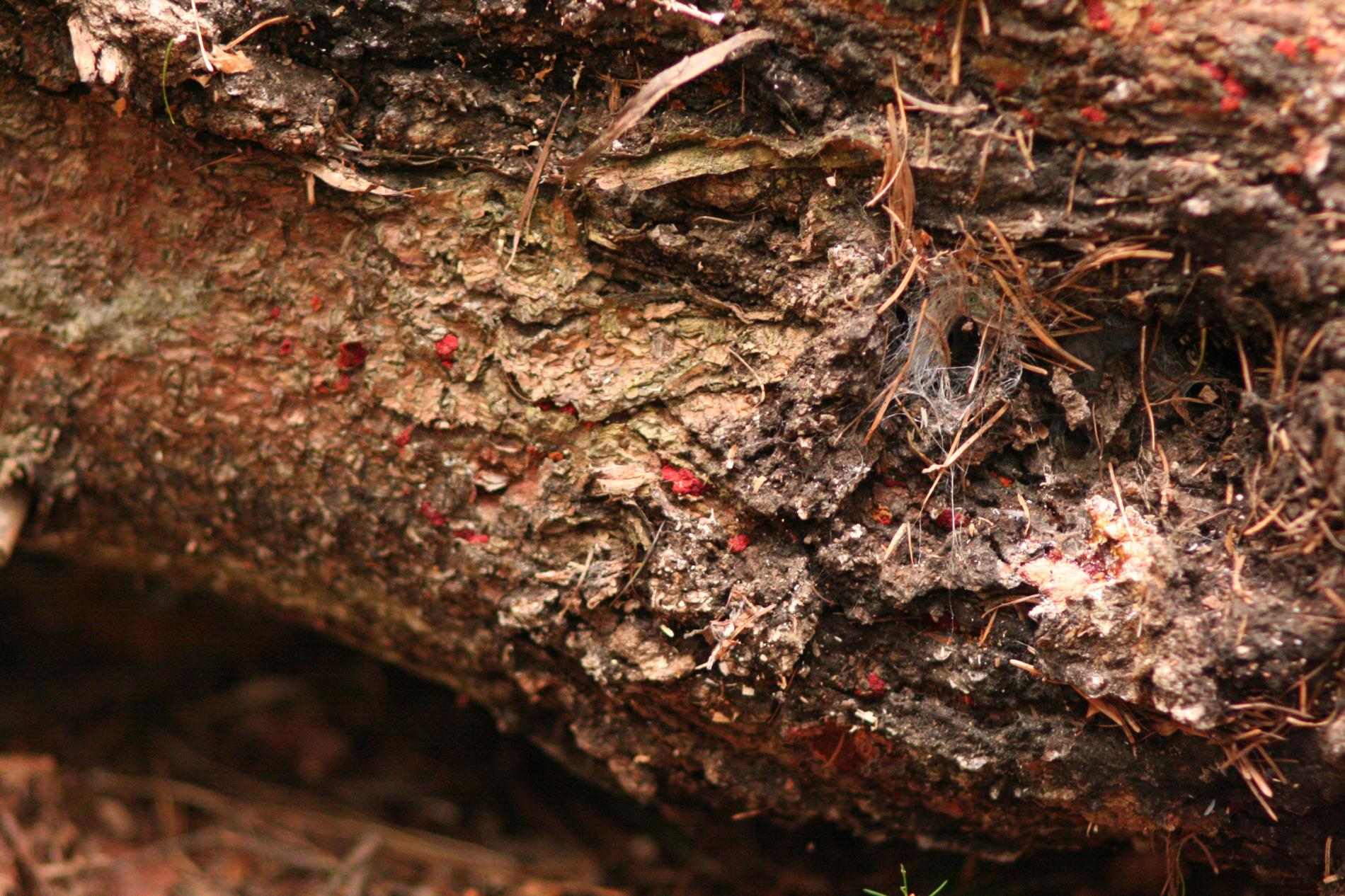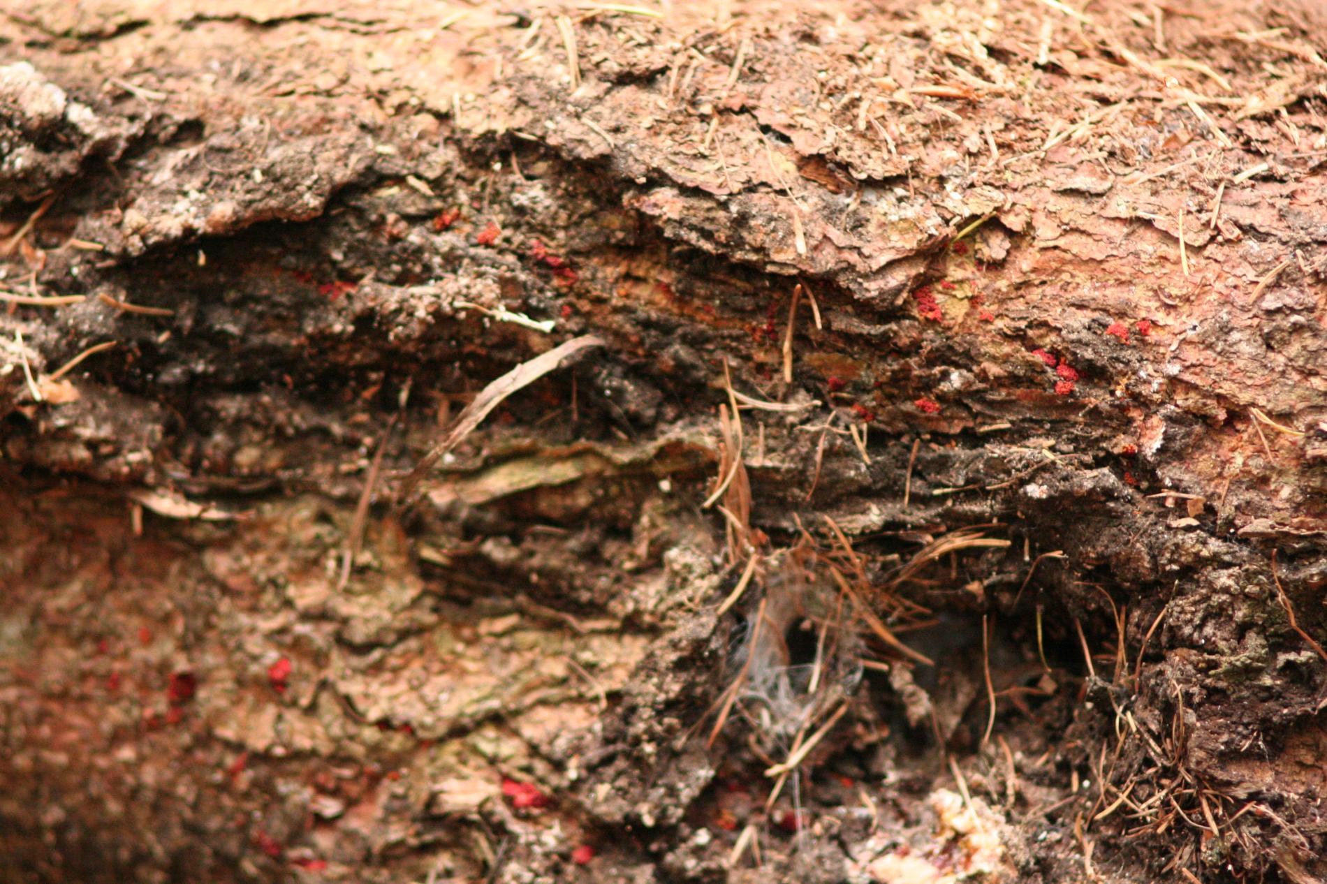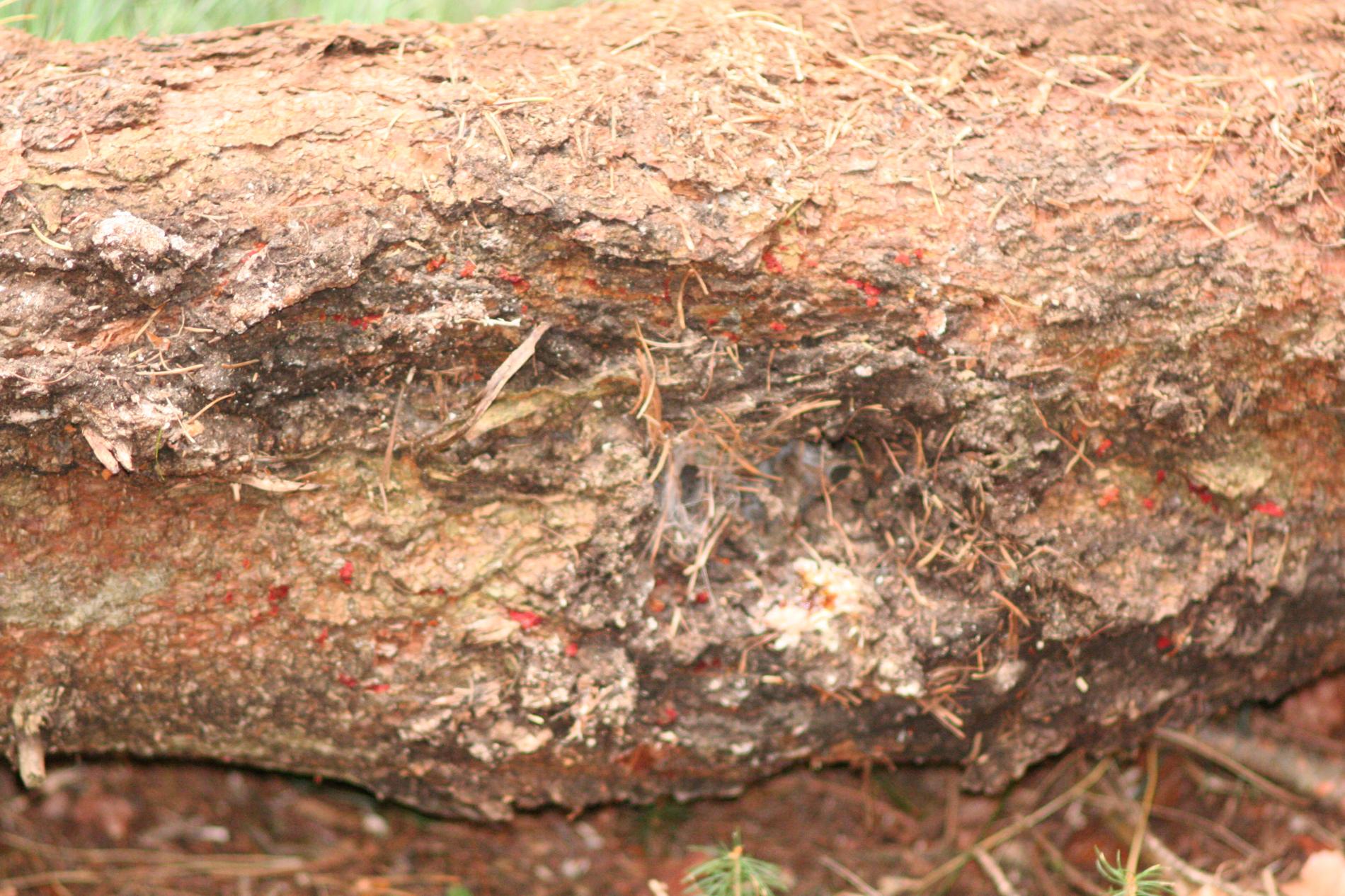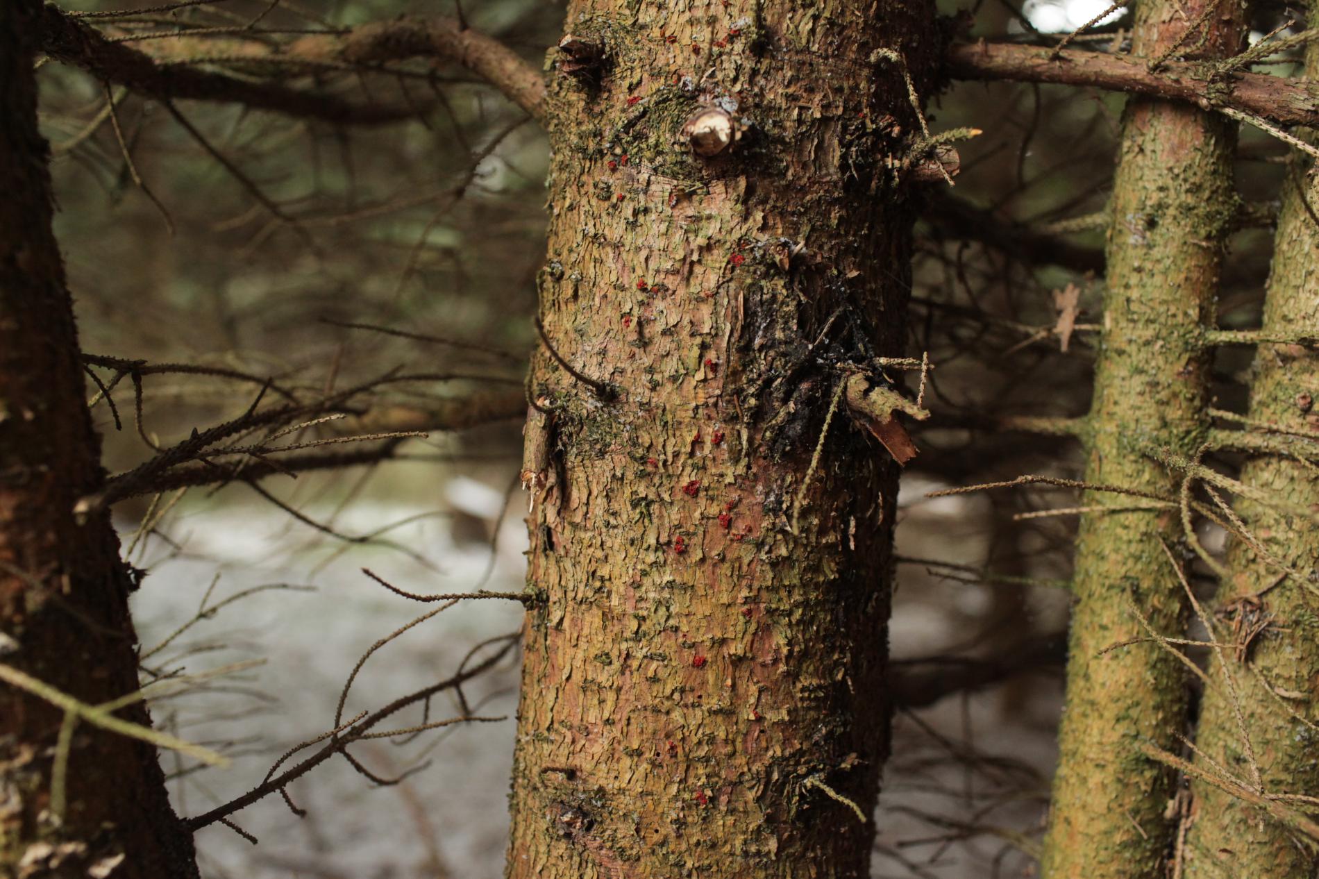 Red bumps on the bark of branches.