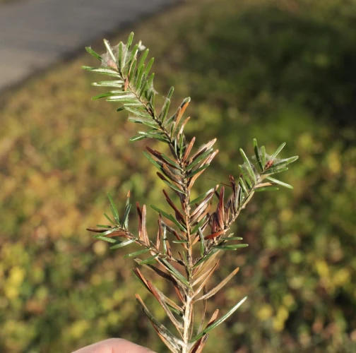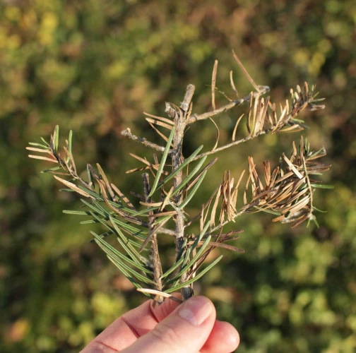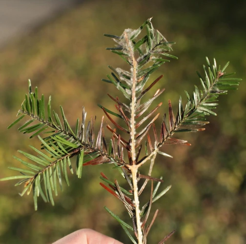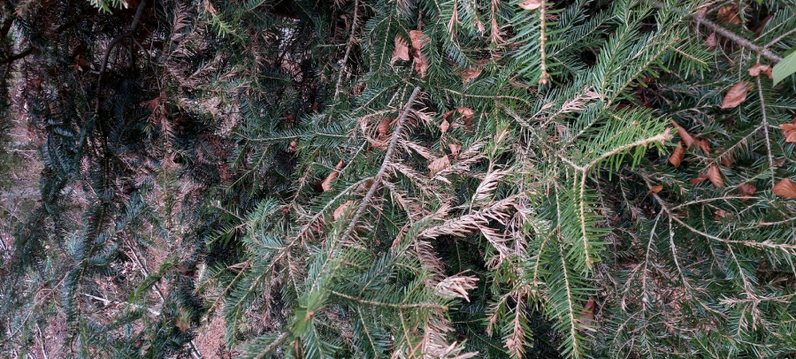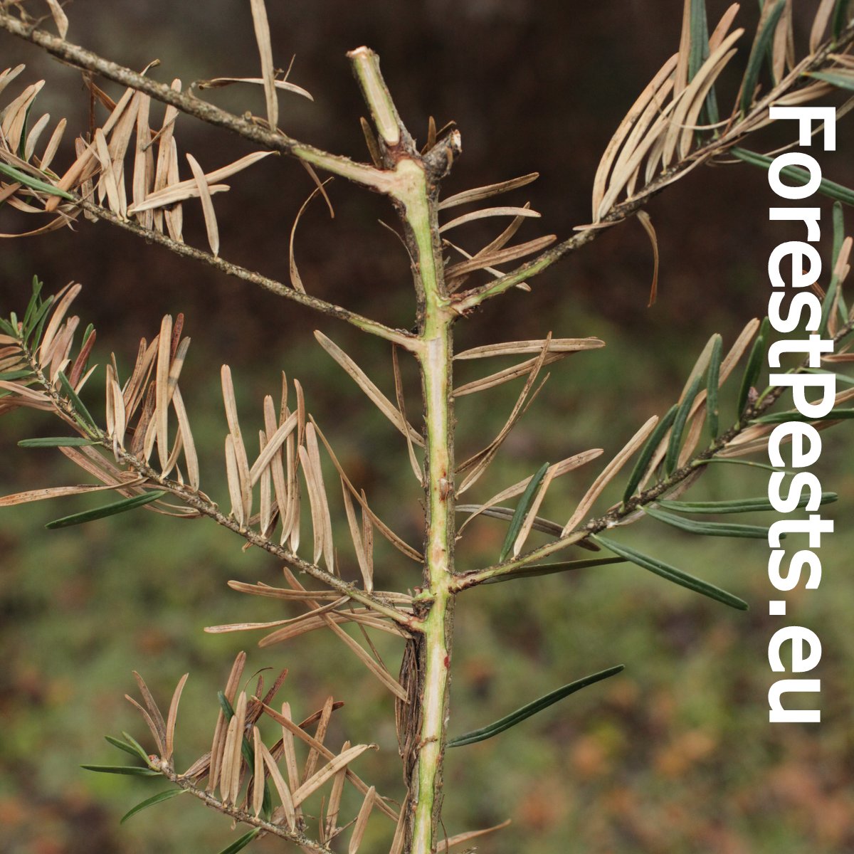 It is a microscopic fungus causing loose needle disease. At the base of these needles are tiny white joints of mycelium. The damage in some parts of the branches is more intense and during total defoliation the shoots also die. The name of the disease caused by the fungus Nematostoma parasiticum (syn. Herpotrichia parasitica) is \\\\\\\"White Felt Blight of Abies\\\\\\\" in English. So it\\\\\\\'s about loose. The disease occurs in humid places, in overcrowded worts, but also in older stands, where there is weak air movement, especially in mountainous areas. As it is a free-flowing disease, the predisposition is mainly humidity. We therefore recommend reducing the humidity of the microclimate in the stands, e.g. pruning. For the most damaged trees, trim the infested branches, or cut down and burn trees with damage greater than 75%.