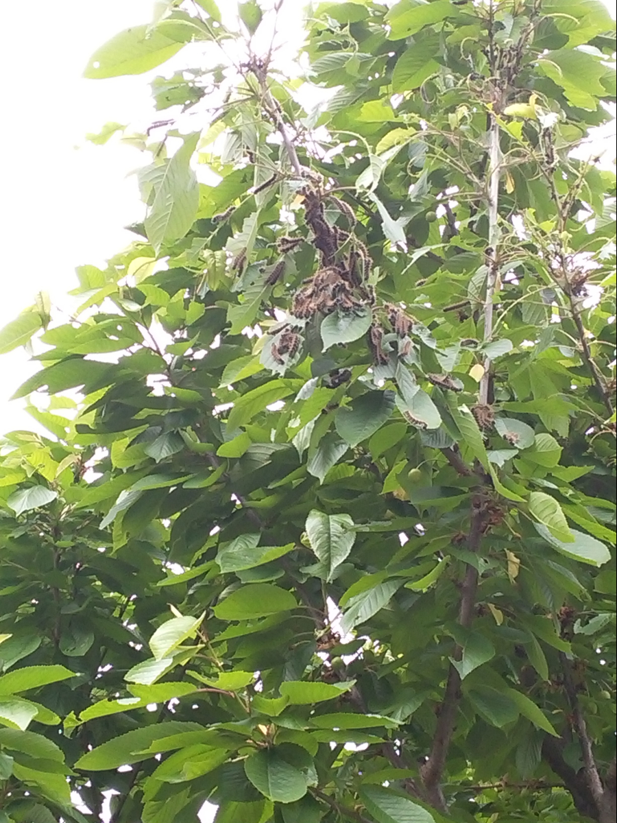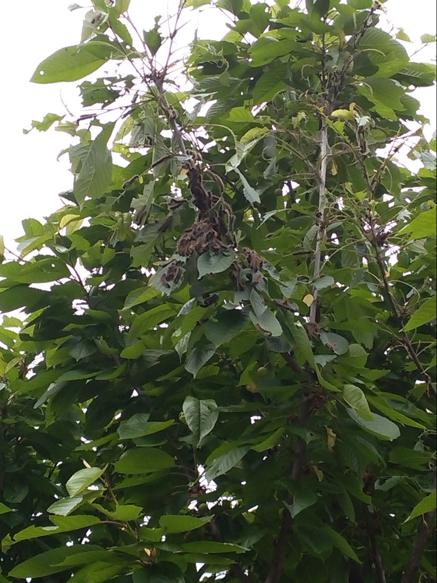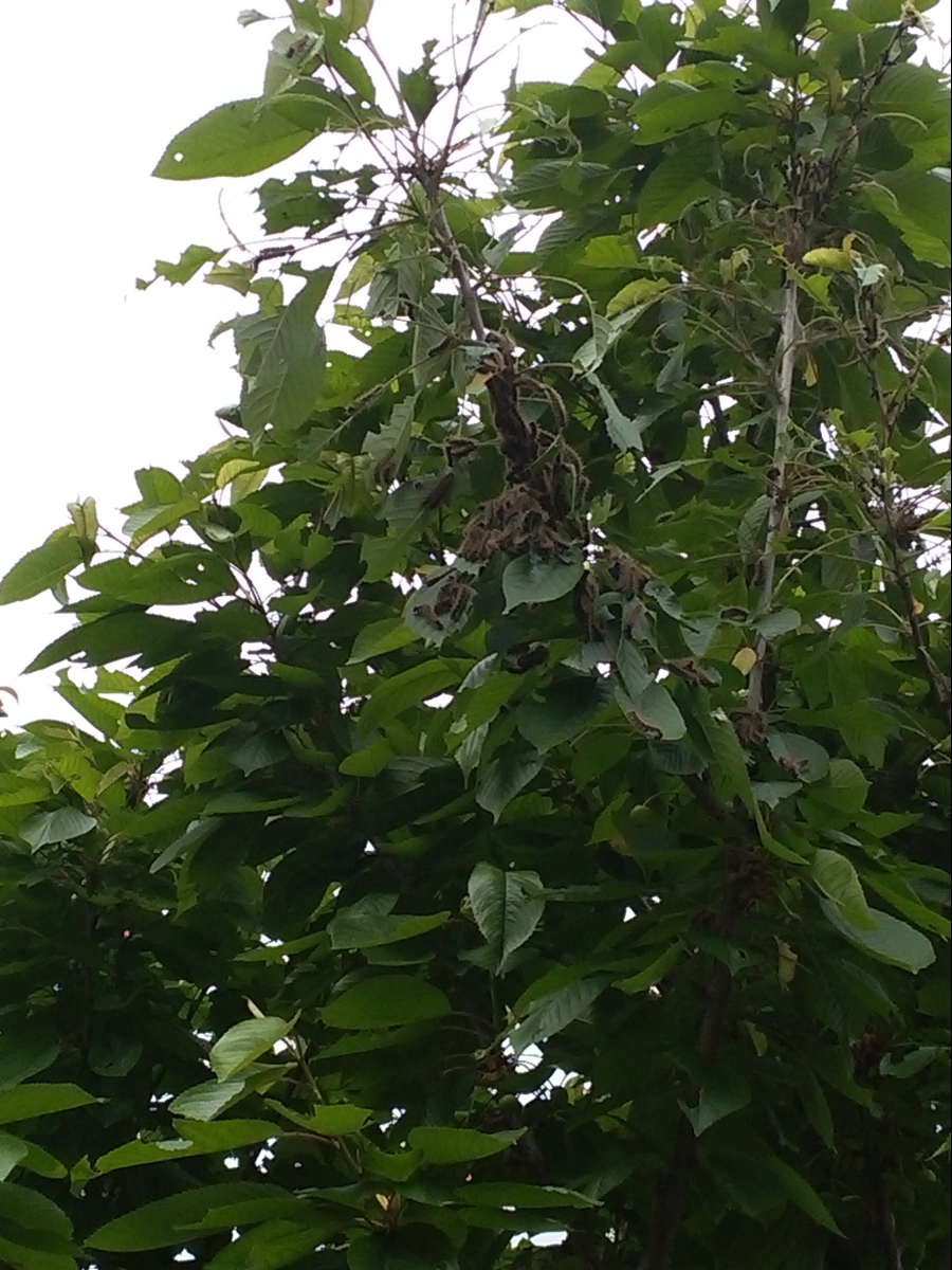 A part or even a whole branch without leaves. In case of mass occurrence, foliage may be missing from the entire tree.