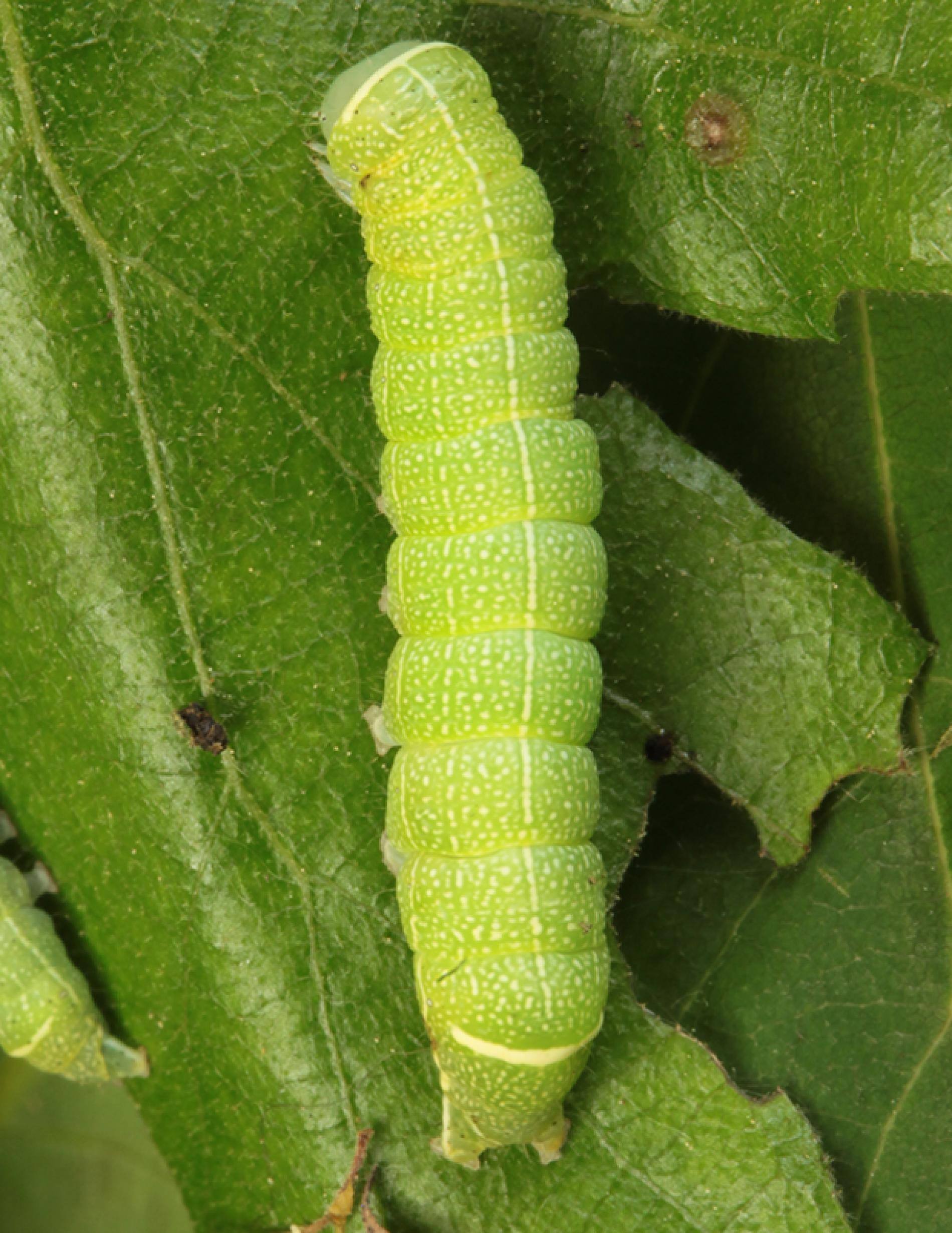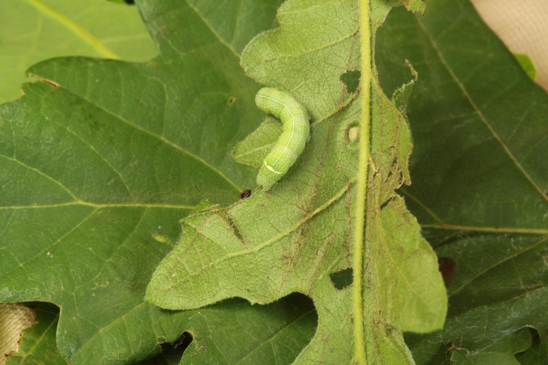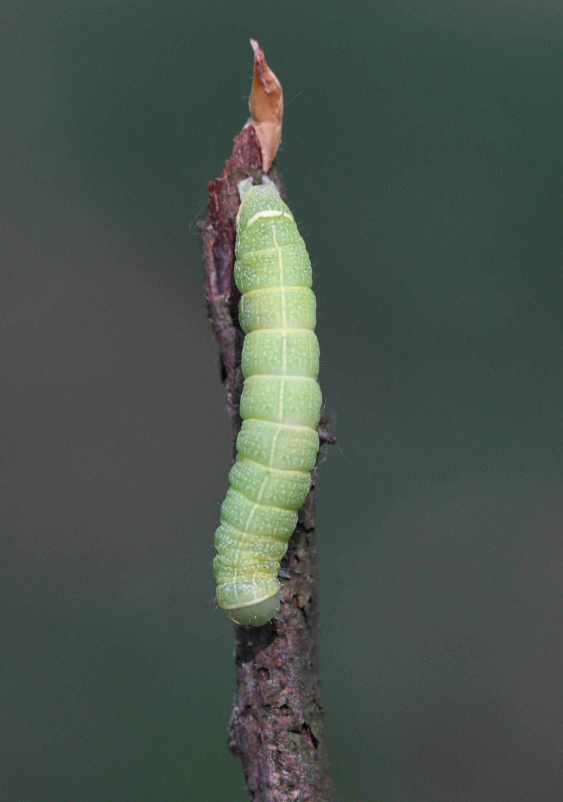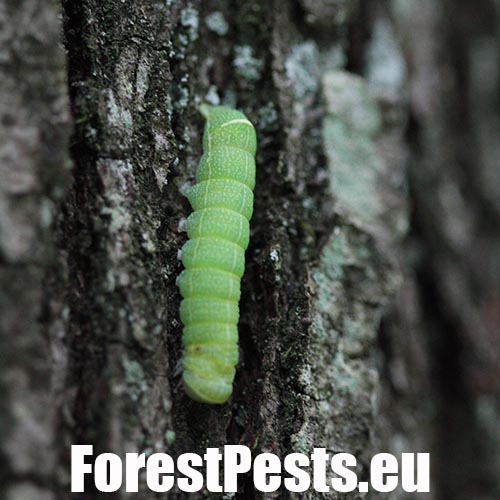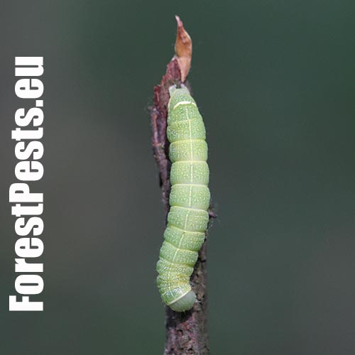 Adult quite variable, there are forms with a plain ground colour, and others with a darker band across the forewing, but all have two large, rounded stigmata outlined paler. Wingspan 34-40 mm. The larva is 30-35 mm in length, bright green with yellow markings - dorsal conspicuous, subdorsal and lateral inconspicuous lines and dense small yellow spots. Pinnacles yellow, setae medium in length, inconspicuous. Head and thoracic shield uniformly grey-green. Prothoracic segment (anteriorly) and abdominal segment 8 (posteriorly) with transverse (between subdorsum) yellow line. Spiracles white, bordered with inconspicuous black line. Larva feeds polyphagously on broadleaf woody plants, mostly oaks and lime trees. The single generation flies in March and April, when it is often attracted to light. Pupa hibernates, in the soil. Forests, shrubby places, orchards and gardens, widely distributed, abundant in lowlands and warmer regions.