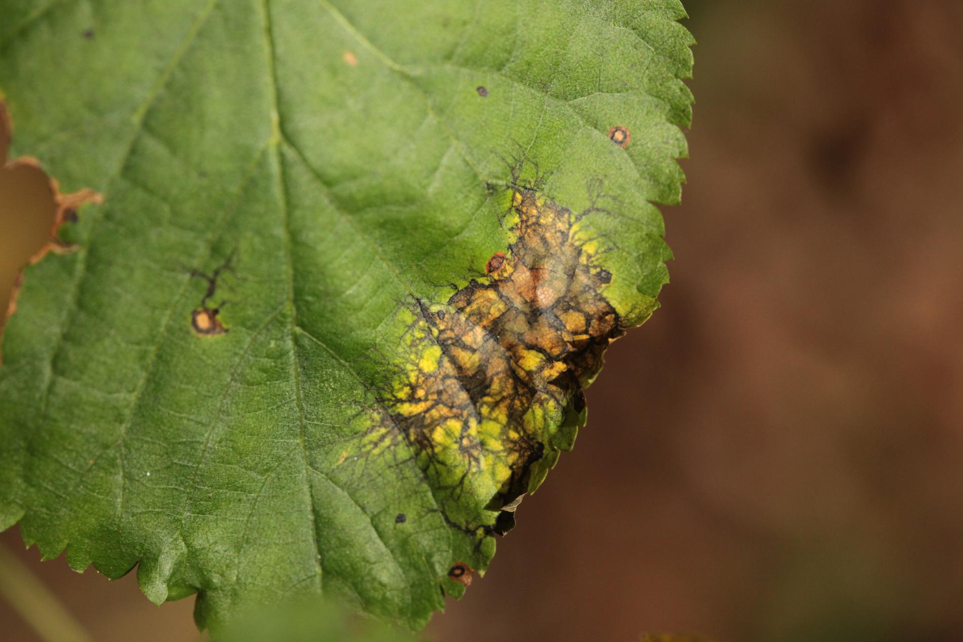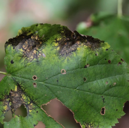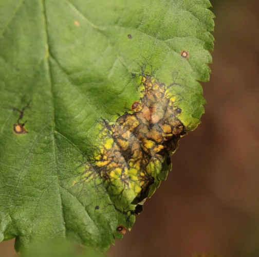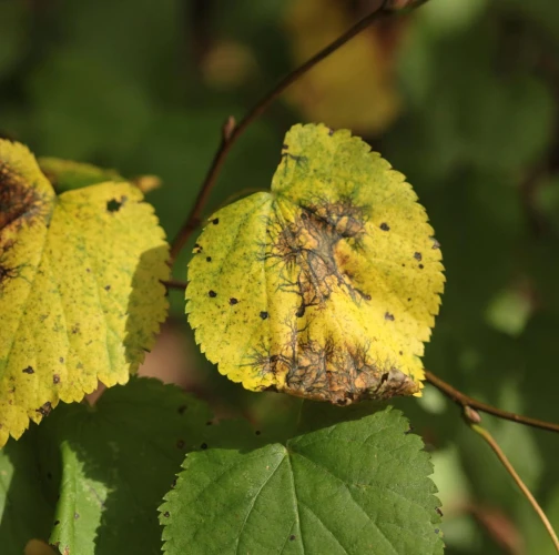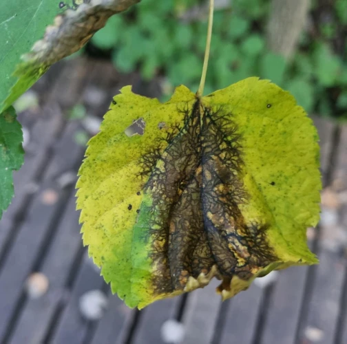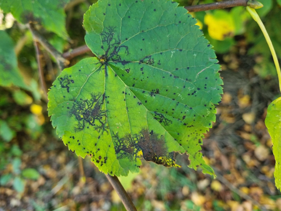 Paraconiothyrium tiliae, also known as Asteromella tiliae or Didymosphaeria petrakiana, is a harmful pest that affects Tilia (linden or lime) trees. It causes leaf spot disease, leading to distinct lesions on the foliage. The lesions expand, merge, and result in irregular-shaped patches. Net-like margins. Infected leaves turn brown or yellow and may fall down prematurely. The pathogen spreads through spores carried by wind, rain, or insects. The severity of the infestation depends on various factors. Cultural practices like proper tree spacing, pruning, and debris removal help reduce the risk. Maintaining optimal soil moisture is crucial. Chemical treatments can be considered in severe cases. Early detection and professional consultation are important for effective management.
