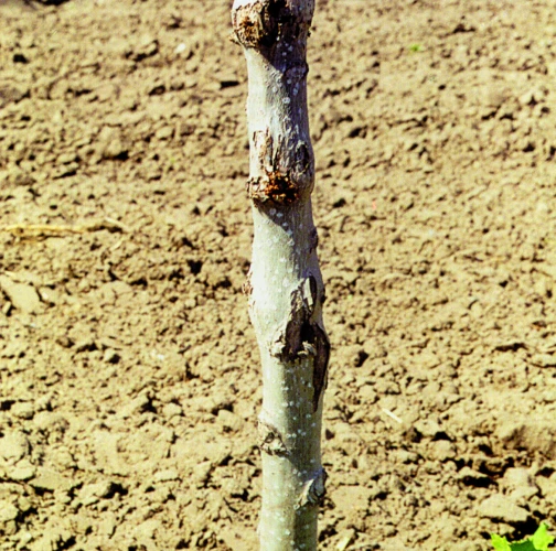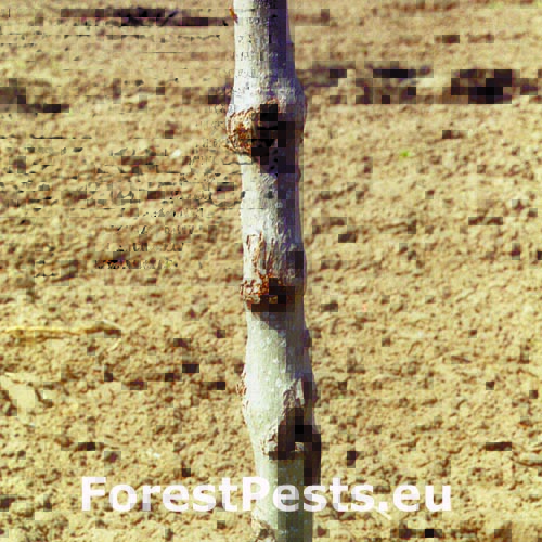 The white larva lives inside the trunk. Thickening of the trunks and branches with diameter of 1.5 - 2 cm.