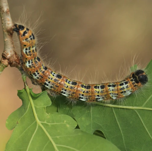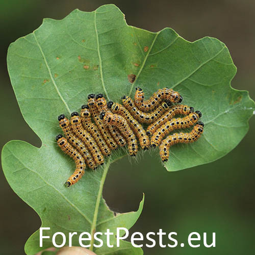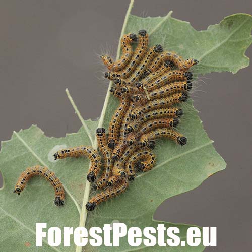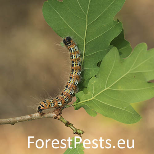 Both larvae and moths are unmistakably coloured. Egg batches of 50 eggs are attached to the underside of the leaves in May-July. The larvae feed gregariously first on the lower leaf epidermis, and then later they devour entire leaves. In fall the fully-grown, 4-6 cm long larvae enter the soil and spend wintertime as pupae. Populations are usually univoltine, but in southern regions bivoltine. The leaves affected by the early instar larvae turn brown. The older larvae can defoliate shoots and twigs, which may result in shoots dying back and trees weakening. Young trees and shrubs are preferred. It occurs in broadleaved forests, plantations, tree nurseries, amenity trees, parks and gardens.