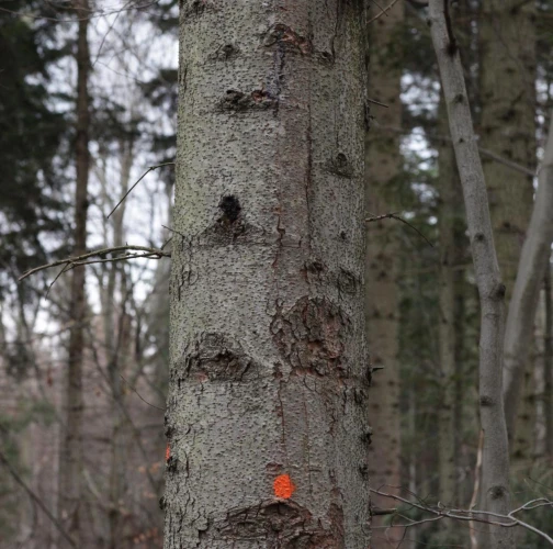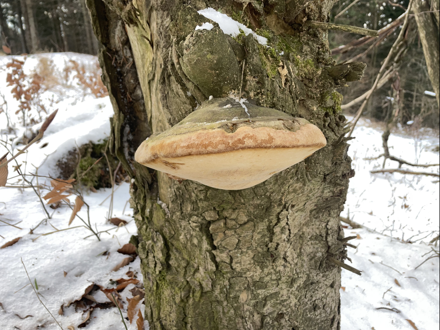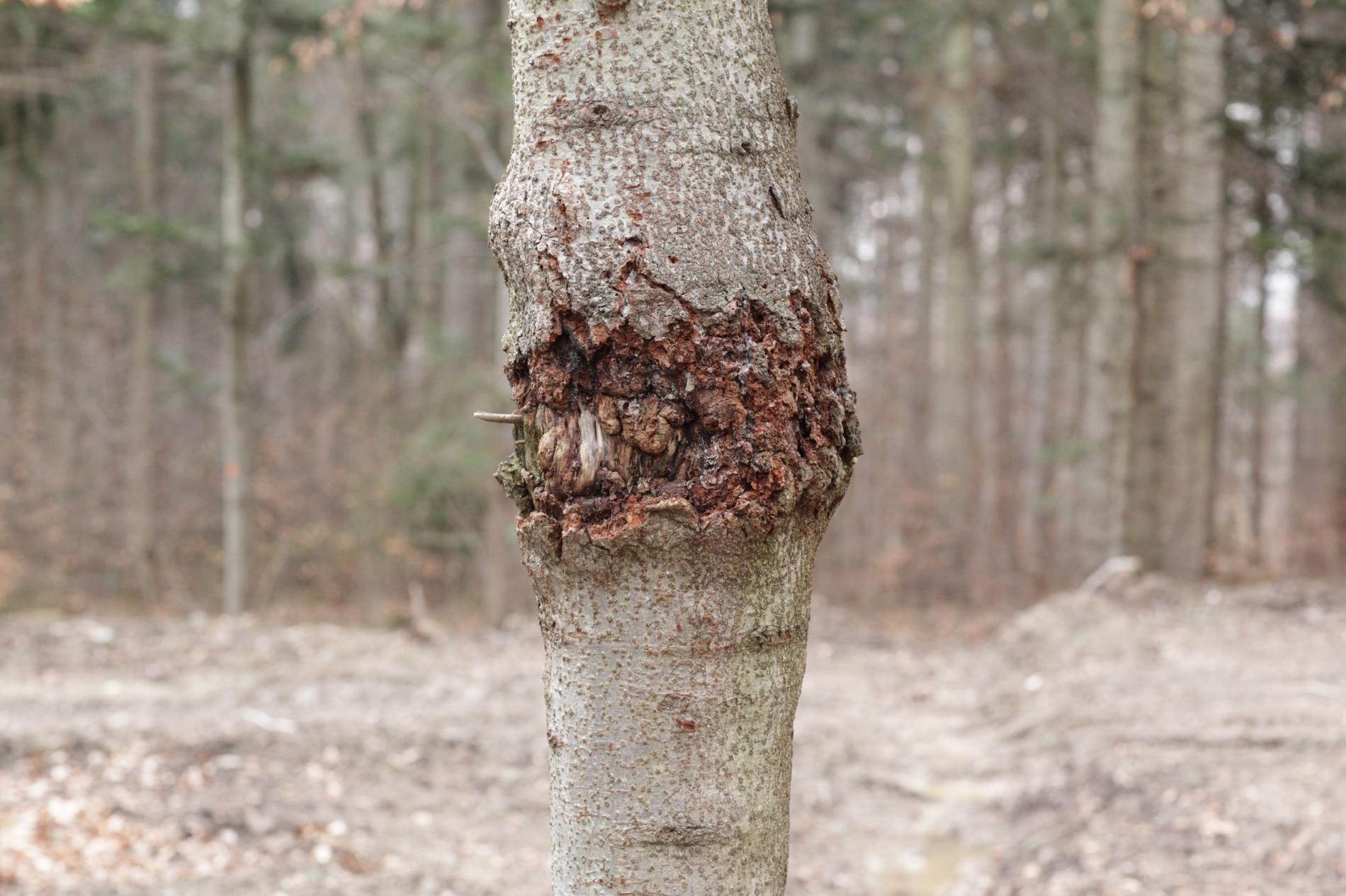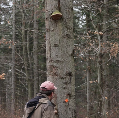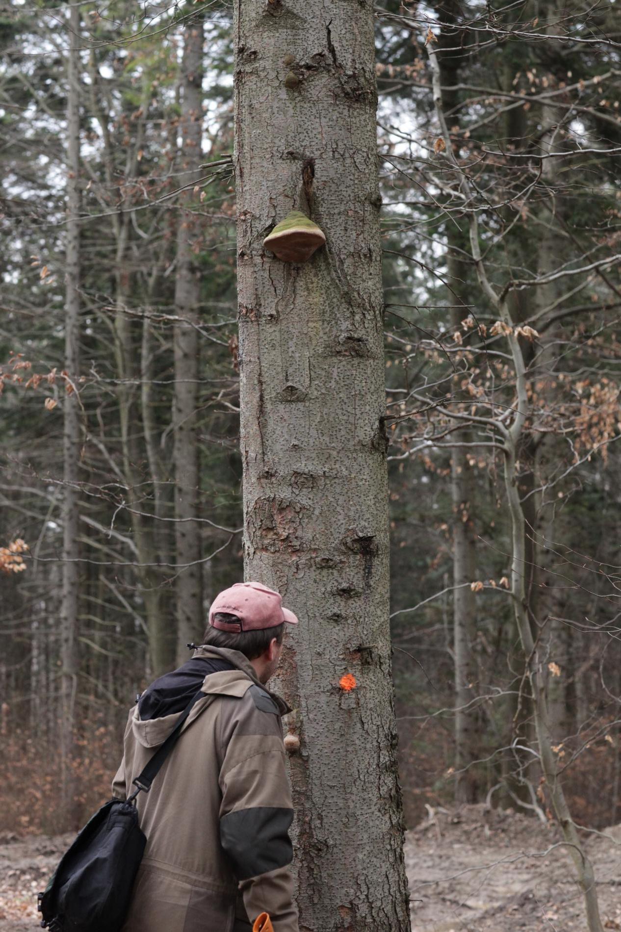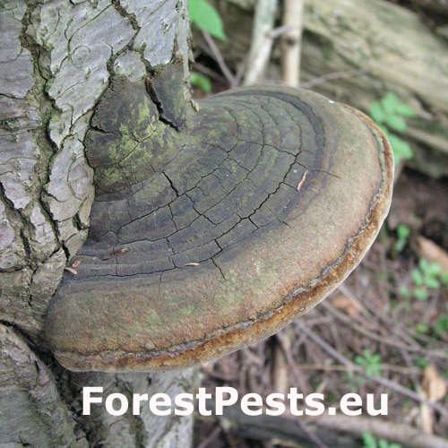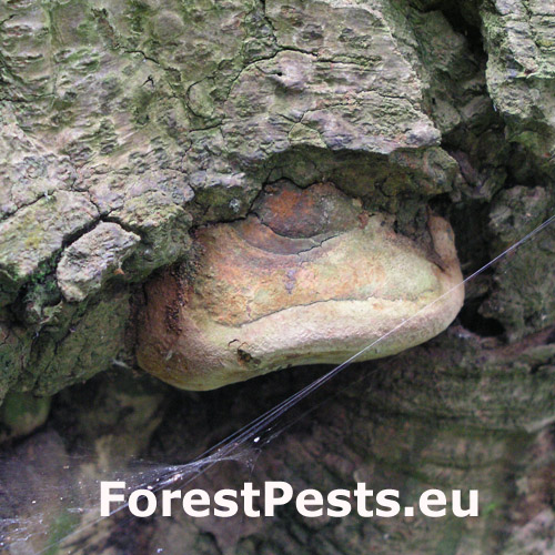 Hartig´s white trunk rot is a wound parasite causing trunk canker. Through its activity, the mycelium causes the even heartwood white rot on living and later also on dead trees. A gateway for the infection may be trunk wound or previous disease, e.g. canker caused by fir broom rust. Fruiting bodies are perennial, effused-reflexed, sessile, the surface is pale yellowish brown and pores are grey up to purple brown.