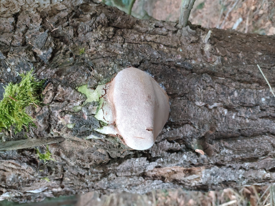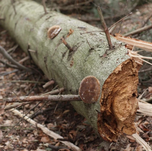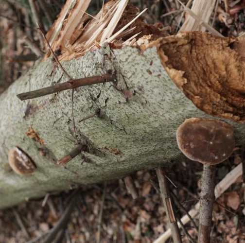 The mycelium causes the even heartwood white rot on living and later also on dead trees.