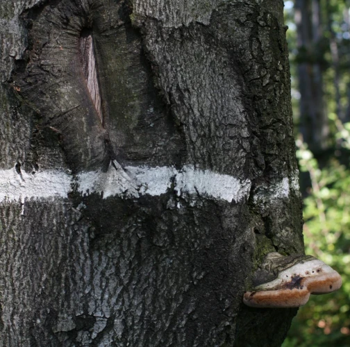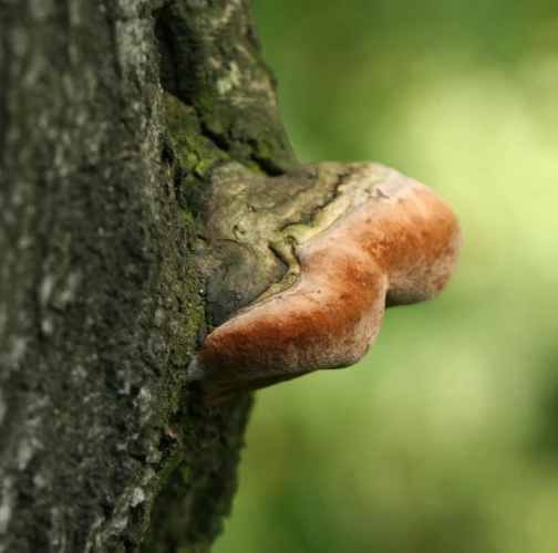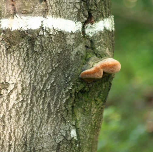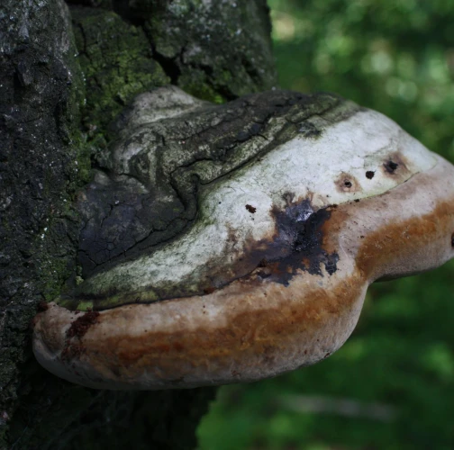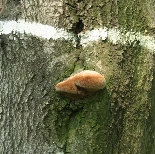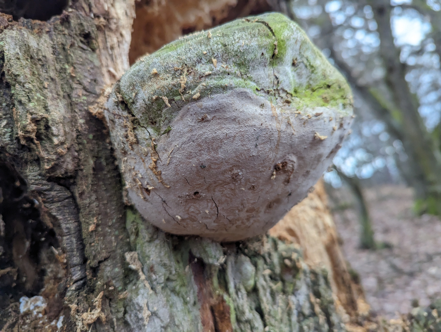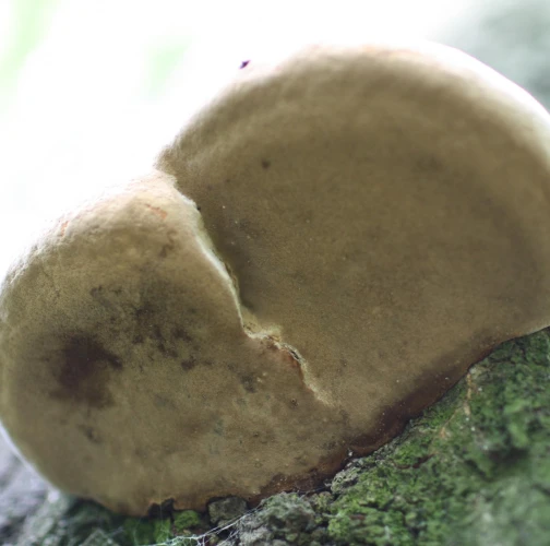 The fruiting bodies are perennial, bracket to semi-effused, firmly attached to the substrate, up to 30 cm wide. The surface is yellowish-rusty, greyish-brown to blackish, with wide concentric zones, the border is yellowish-brown and rounded, with cracks when old. The pores are yellowish, greyish-brown. The mycelium causes white rot of living oaks.