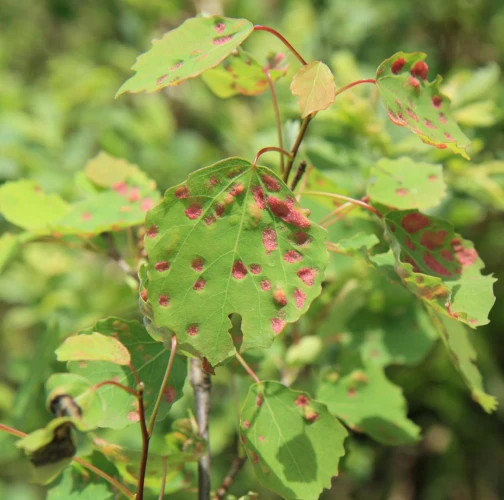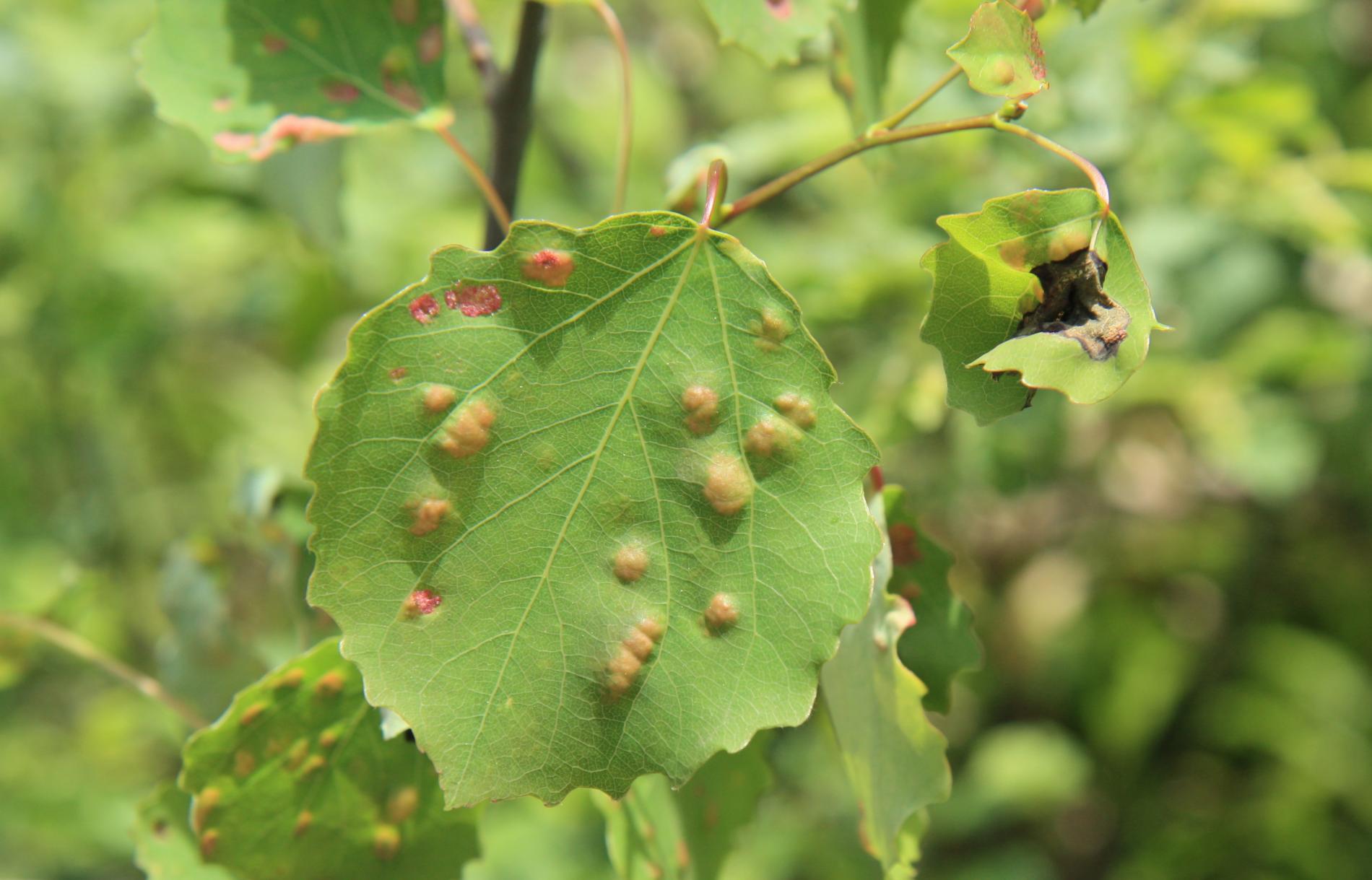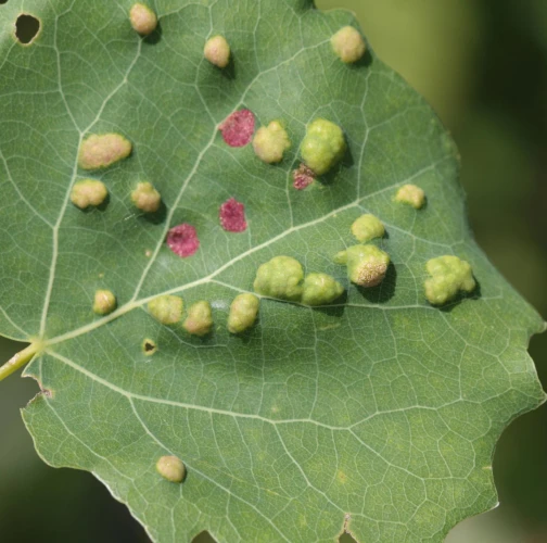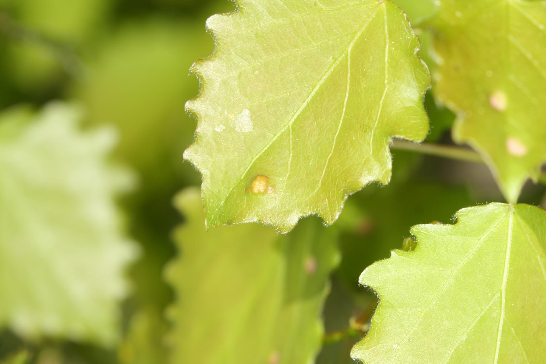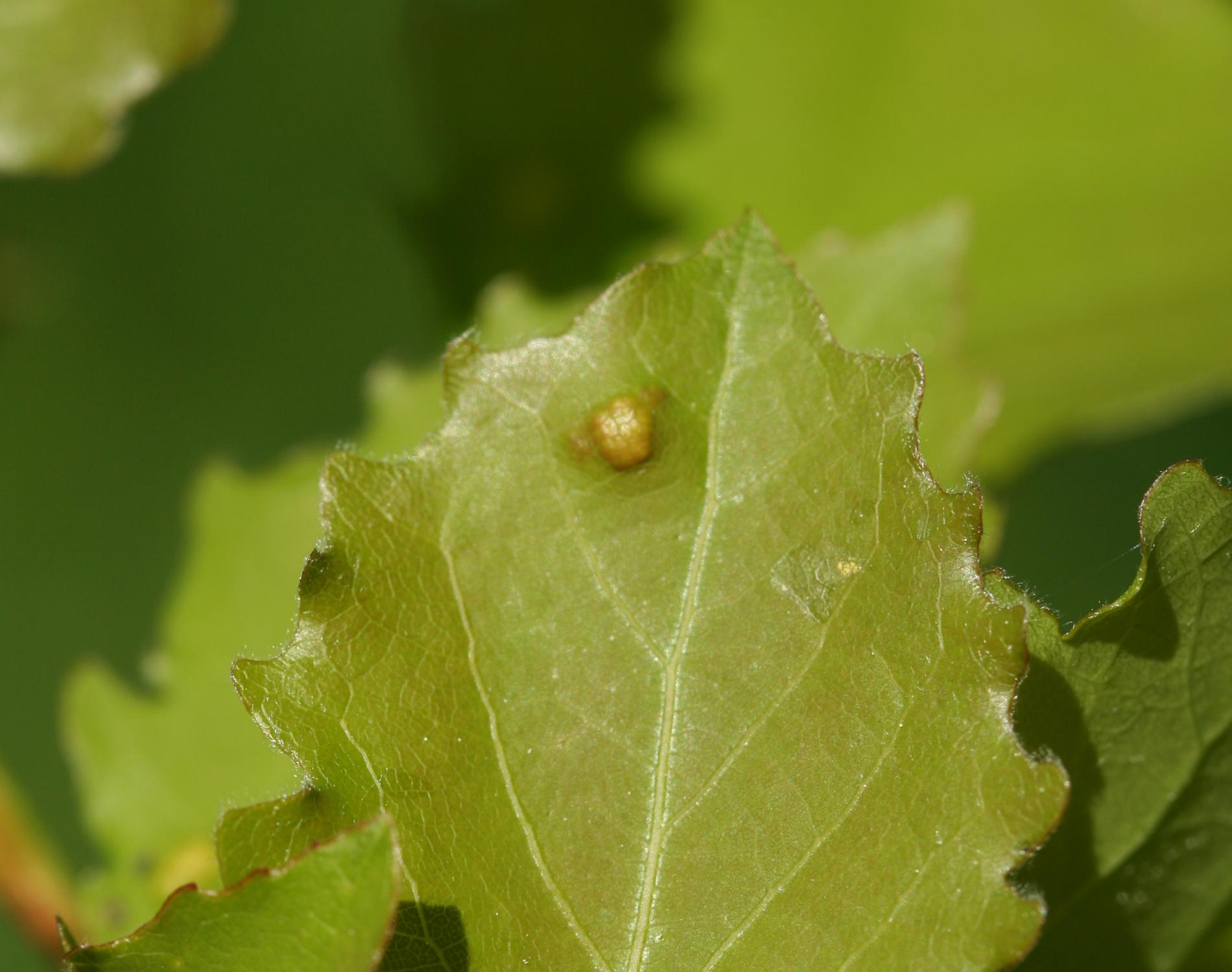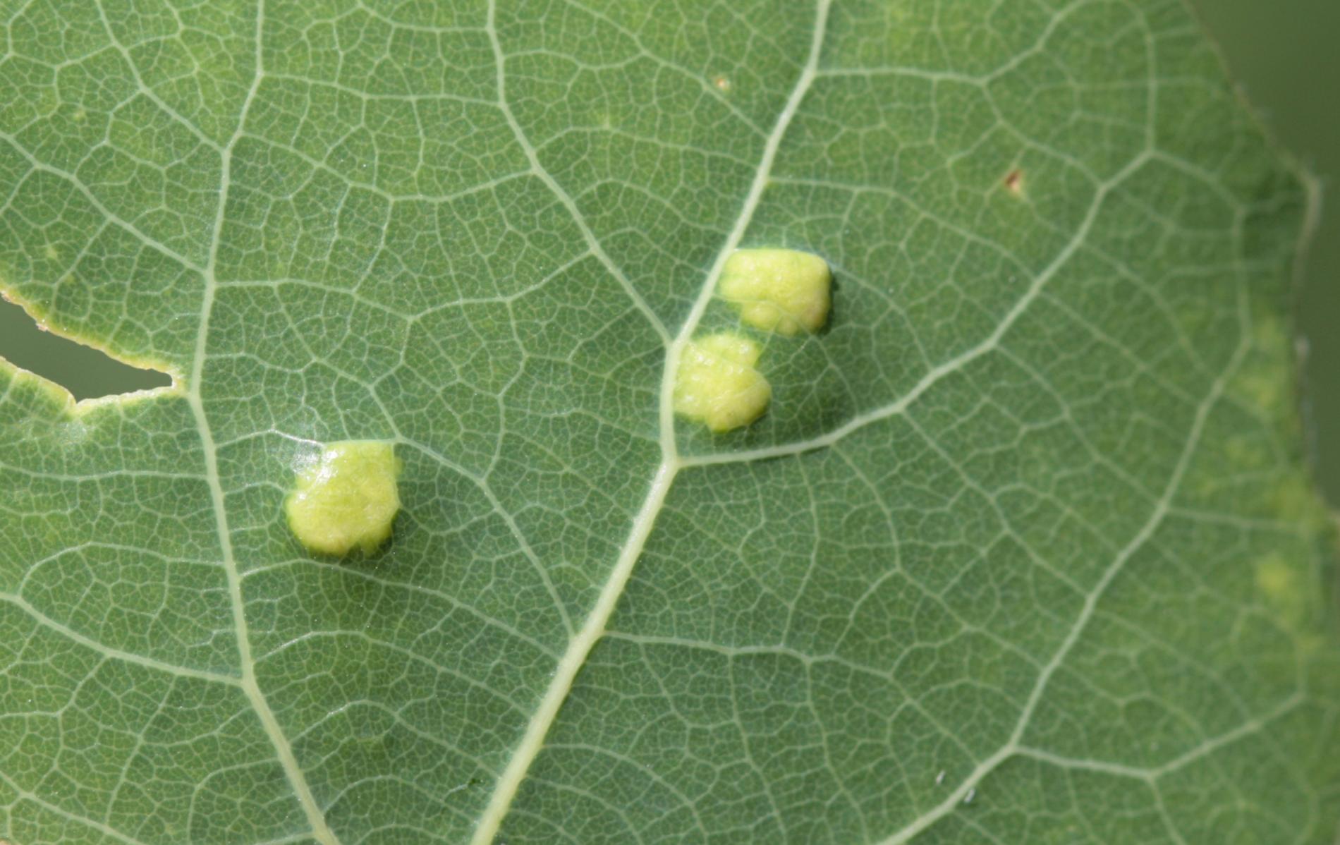 Phyllocoptes populi is a species of mite (acari), that is known to cause damages to the leaves of poplar trees. These mites are microscopic in size and typically infest the underside of the leaves. They feed on the leaf tissue, resulting in a variety of symptoms and damages. Infested poplar leaves may display symptoms such as leaf curling, distortion, and discoloration. Galls induced by this species are small pale swellings on the upper surface of the leaf. The same swellings are seen as red hairy areas on the bottom of the leaf. Sometimes hairy areas can be found on top side of the leaves too. The damages caused by Phyllocoptes populi mites can weaken the affected poplar trees, affecting their overall health and vigor.