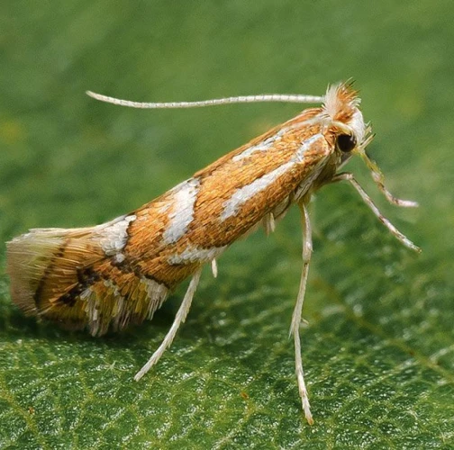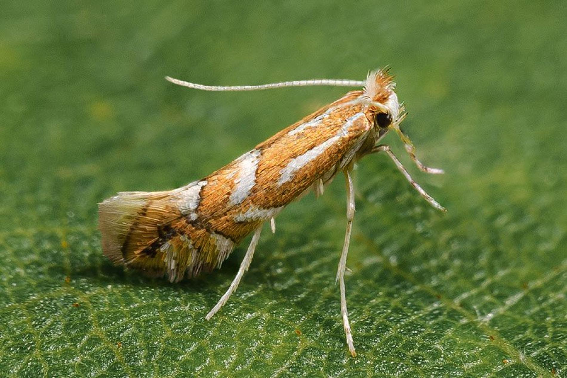 Phyllonorycter cerasicolella is a leaf-mining moth from the family Gracillariidae, primarily associated with cherry trees (Prunus spp.), including cultivated species. The larvae create mines on the underside of leaves, which can affect the aesthetic appearance of trees and, in high numbers, contribute to premature leaf fall. The species occurs across most of Europe, except northern Scandinavia. It produces two to three generations per year, with adults emerging in spring and late summer. The larvae overwinter within the mines and pupate in early spring. Besides cherries, the species can occasionally mine leaves of apple trees (Malus spp.) when grown near Prunus.