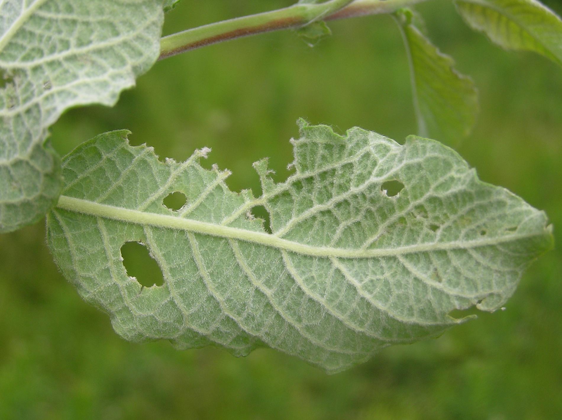 There is a small crust on the leaves. The leaves are perforated, sometimes completely eaten.