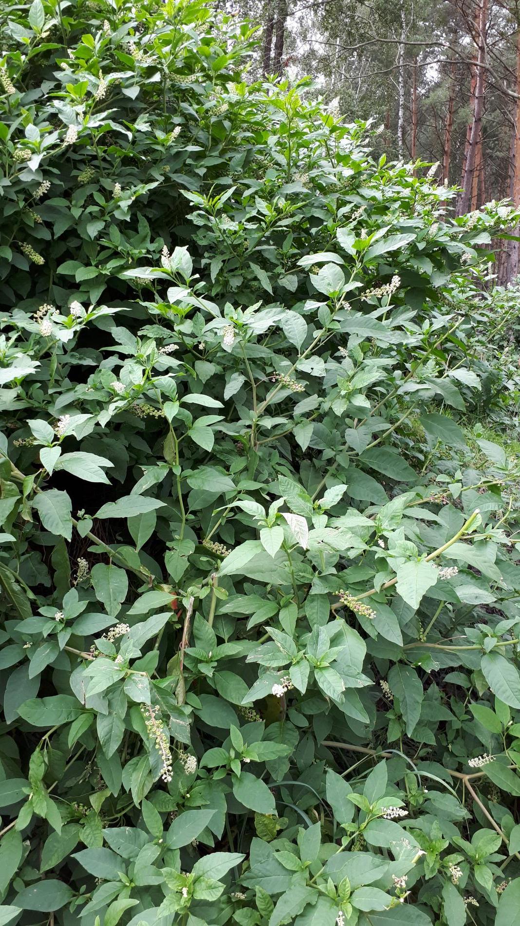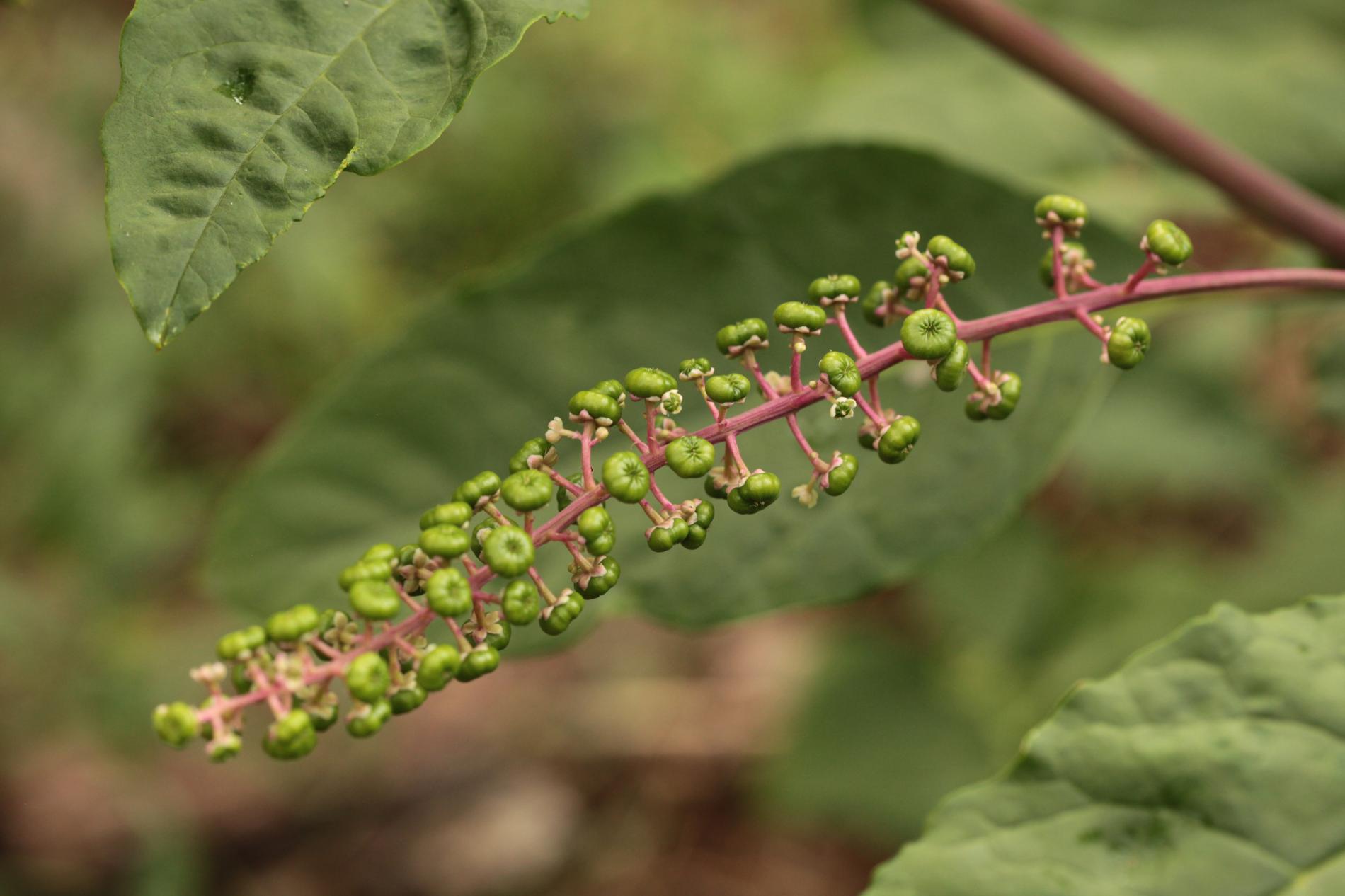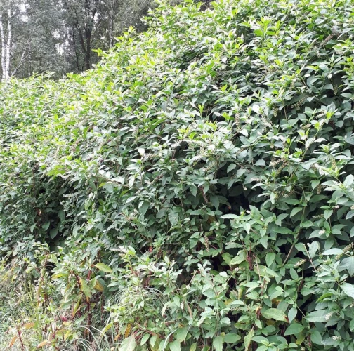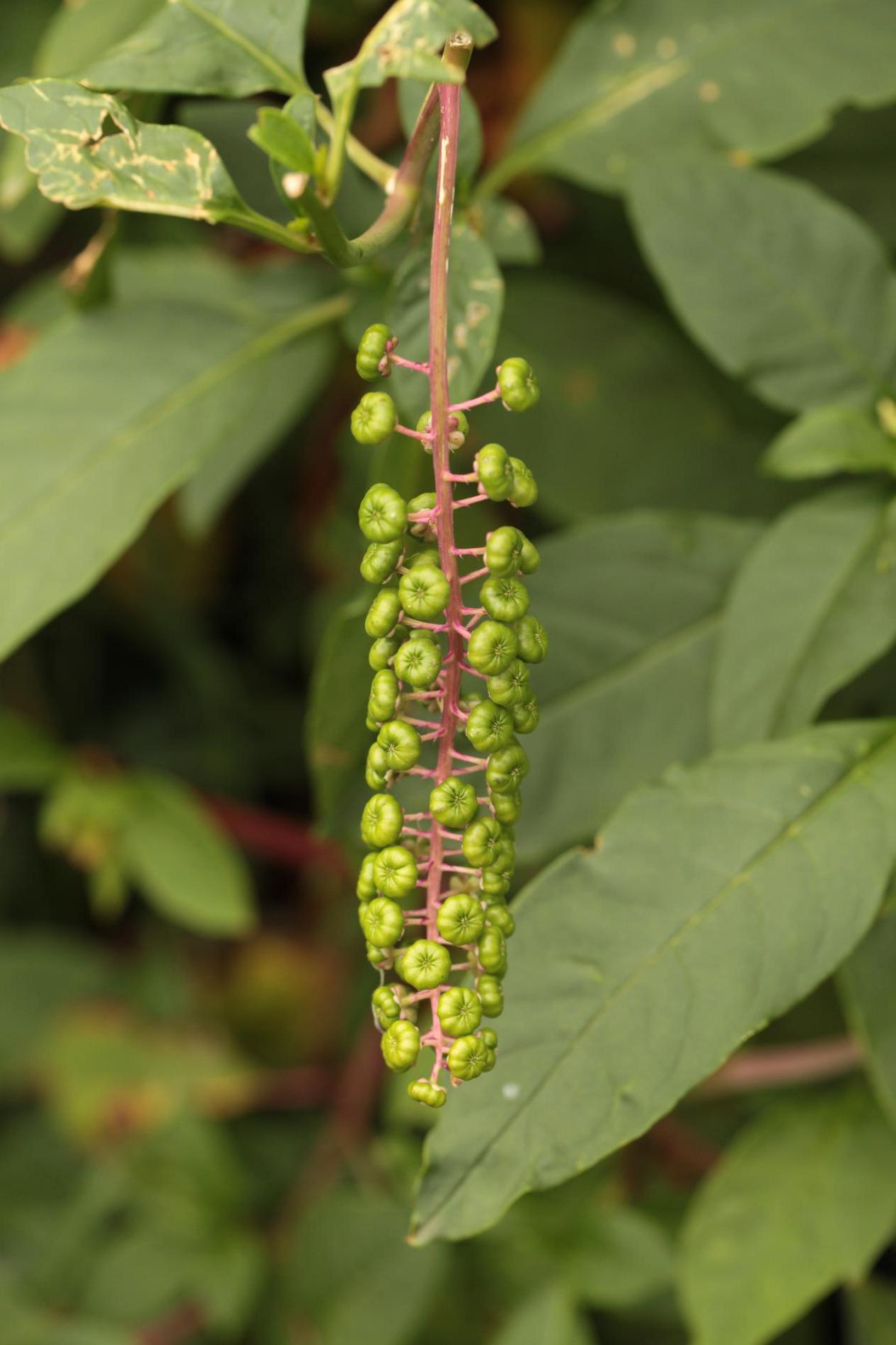 Phytolacca americana, commonly known as Pokeweed, is a perennial herbaceous plant that is native to North America. It can grow up to 200 cm tall and has large, oval leaves and clusters of small white flowers that give way to dark purple berries. Pokeweed has a long history of traditional use as a medicinal plant, but it is also considered toxic and should not be consumed without proper preparation. Despite its toxicity, pokeweed is sometimes cultivated as an ornamental plant for its attractive foliage and berries. Additionally, the plant has cultural significance in some Native American tribes and has been used in traditional ceremonies. Pokeweed is known for its adaptability and ability to grow in a wide range of soil types and conditions. It is also capable of rapid growth and can quickly establish dense stands, outcompeting native plant species. Additionally, pokeweed has no natural predators in Europe, allowing it to spread unchecked.