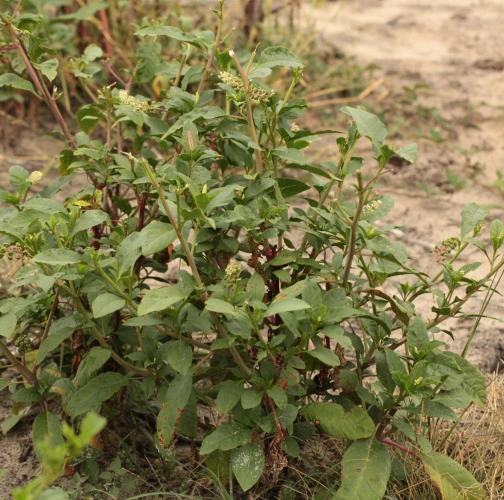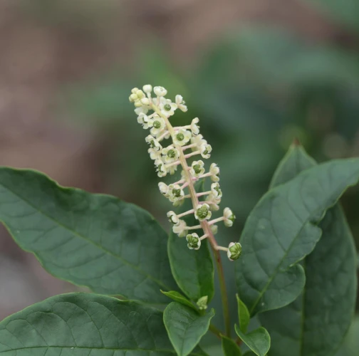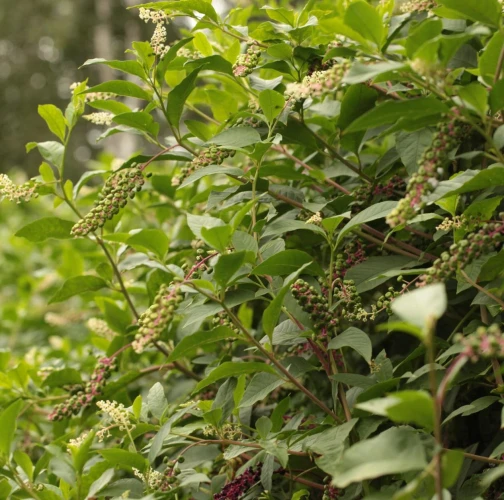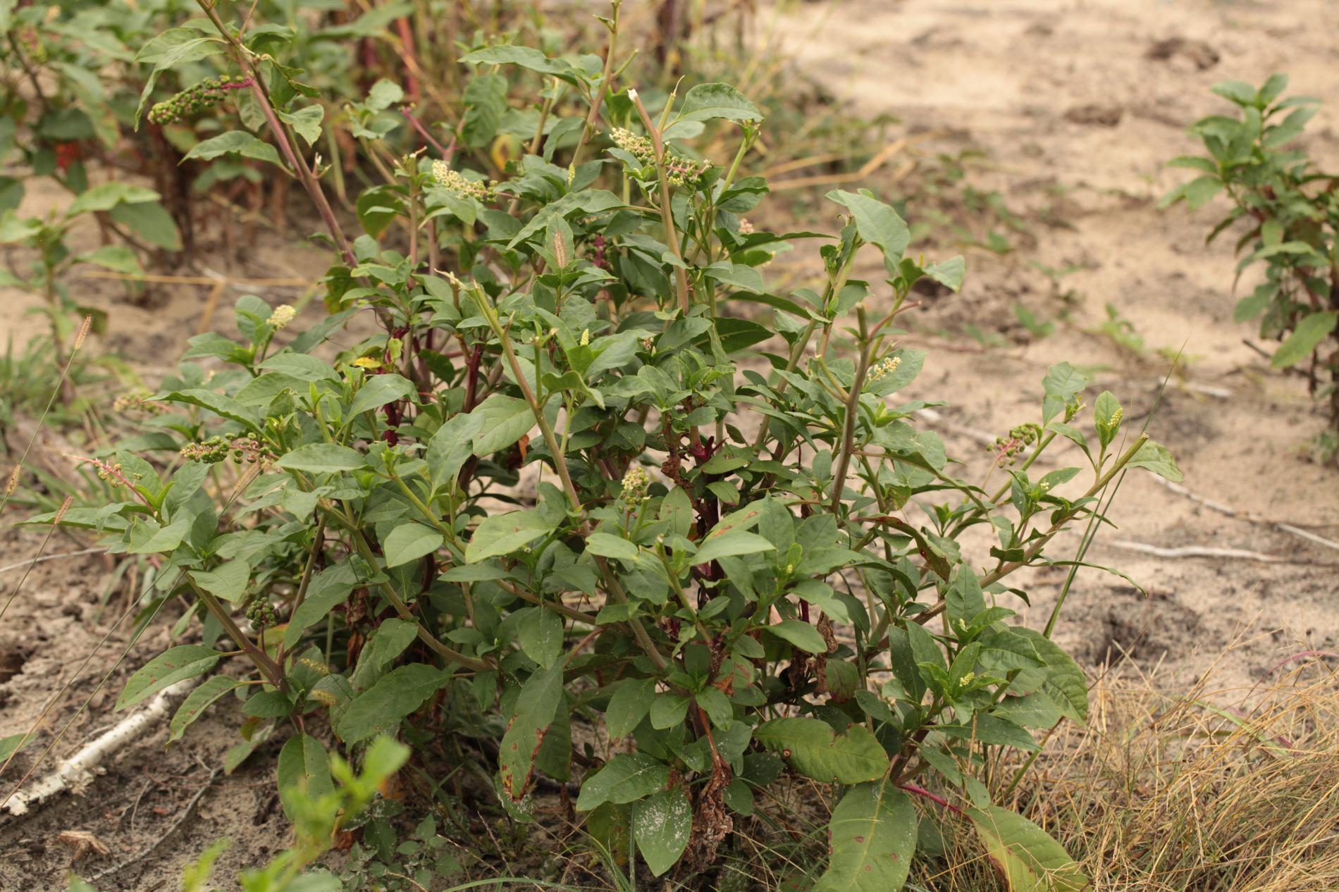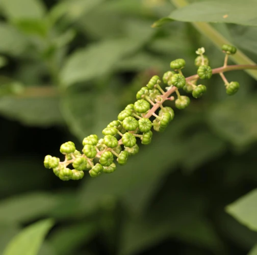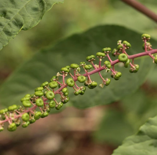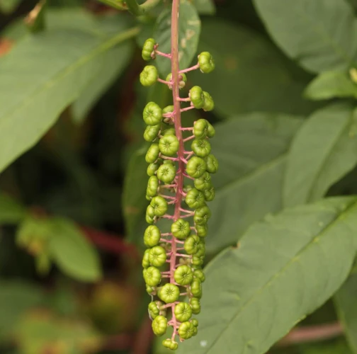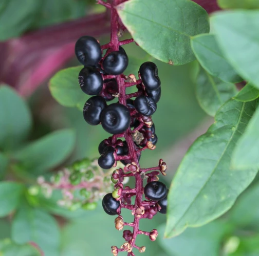 Phytolacca americana, commonly known as Pokeweed, is a perennial herbaceous plant that is native to North America. It can grow up to 200 cm tall and has large, oval leaves and clusters of small white flowers that give way to dark purple berries. Pokeweed has a long history of traditional use as a medicinal plant, but it is also considered toxic and should not be consumed without proper preparation. Despite its toxicity, pokeweed is sometimes cultivated as an ornamental plant for its attractive foliage and berries. Additionally, the plant has cultural significance in some Native American tribes and has been used in traditional ceremonies. Pokeweed is known for its adaptability and ability to grow in a wide range of soil types and conditions. It is also capable of rapid growth and can quickly establish dense stands, outcompeting native plant species. Additionally, pokeweed has no natural predators in Europe, allowing it to spread unchecked.