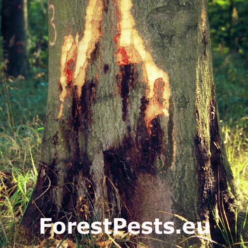 A soil-borne fungal pathogen, infecting fine or thicker roots of transplants, young plantations and mature trees as well as their trunk bases. The main symptoms of infection are tarry stains, flame-shaped necrotic cambium and degradation of the whole forest stand. They prefer mainly wet (streamside) and gleyed soils. Its population may spread by water runoff or by being carried in mud from the infected forest stands on wheels of forest vehicles, etc.
