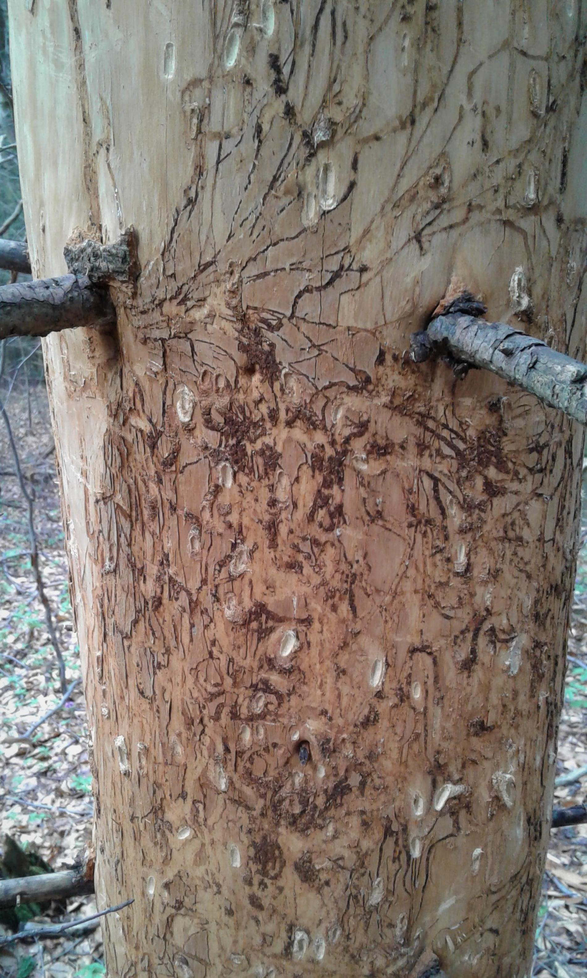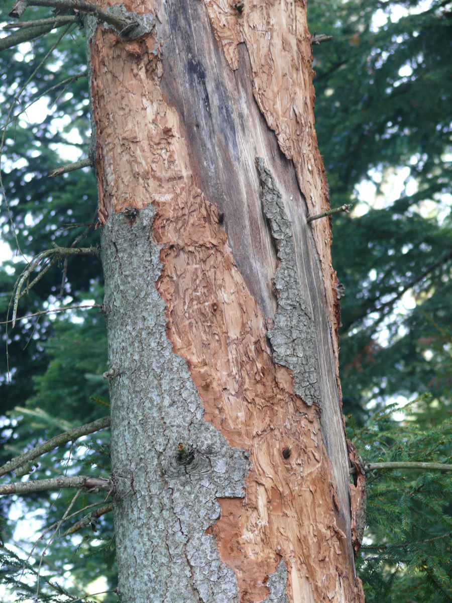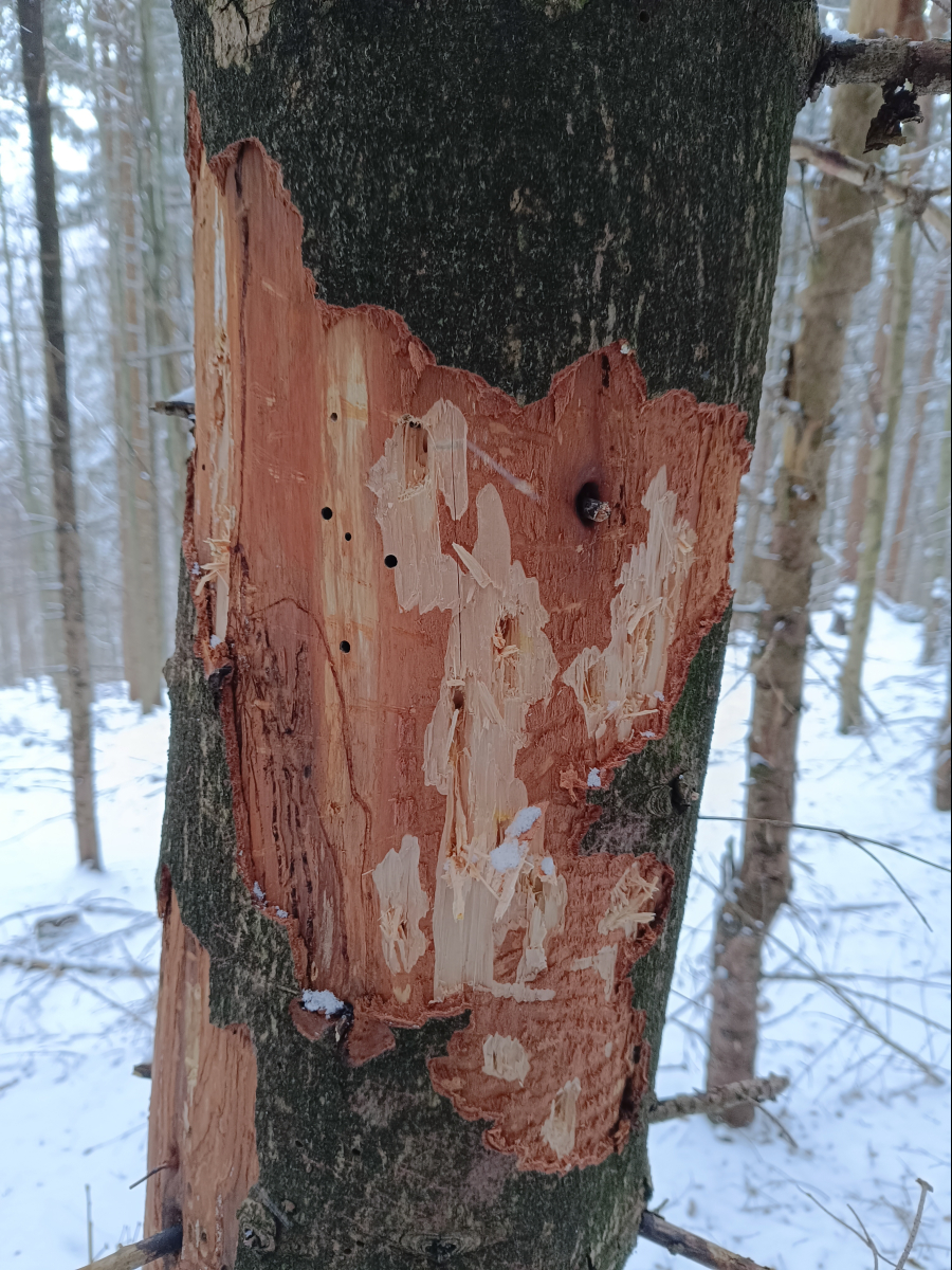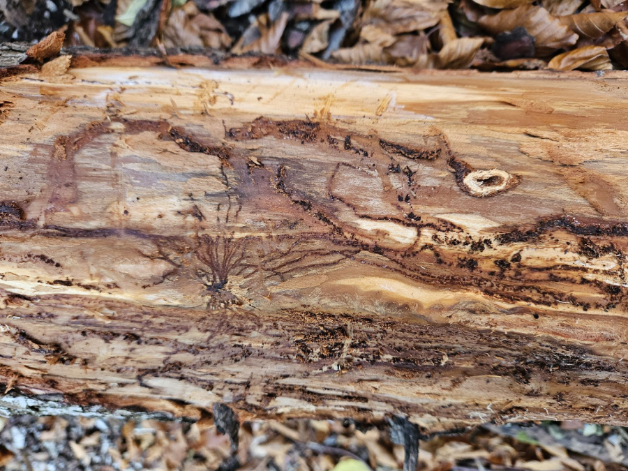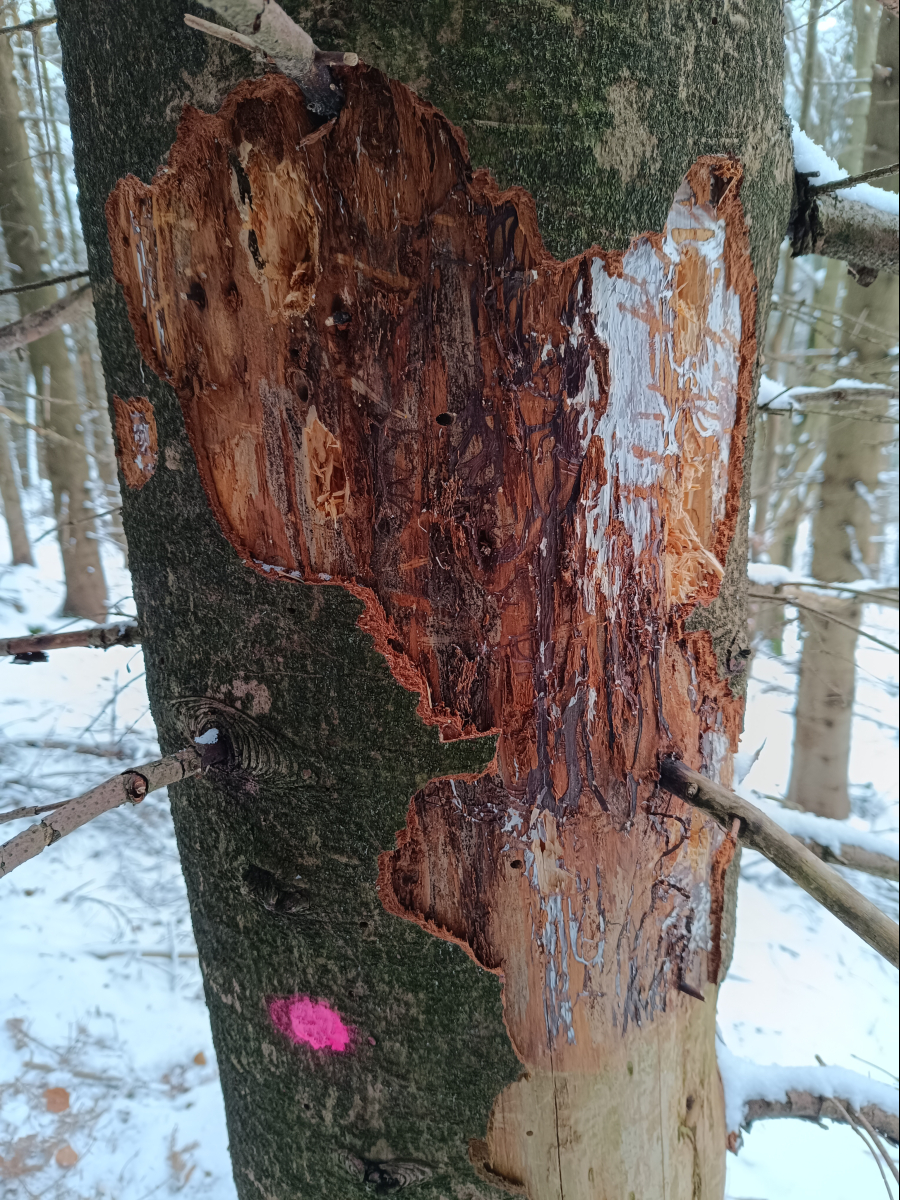 The larvae of Pissodes piceae develop under the bark of fir trunks, preferably in trees between 40-80 years old. The female of the species lays multiple eggs into a pit gnawed off in the bark. Once hatched, the larvae bore into the bark and gradually create galleries by biting away at it. At the ends of these galleries, oval pupal chambers are formed, which are embedded in wood and filled with a small layer of fine wood chips. The pupae, which have a visible "nose," develop inside these chambers before emerging as brown adults with yellow spots on their elytrae. This pest species completes its life cycle annually. Adult insects may live for up to two years and lay eggs throughout their lifetime, resulting in various life stages occurring at the same time. The species is a dangerous pest that has a tendency to cause mass outbreaks on weakened trees, often in conjunction with other pest species.