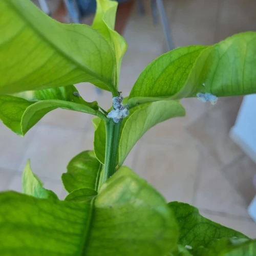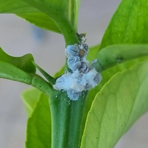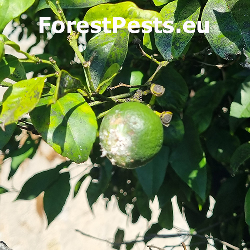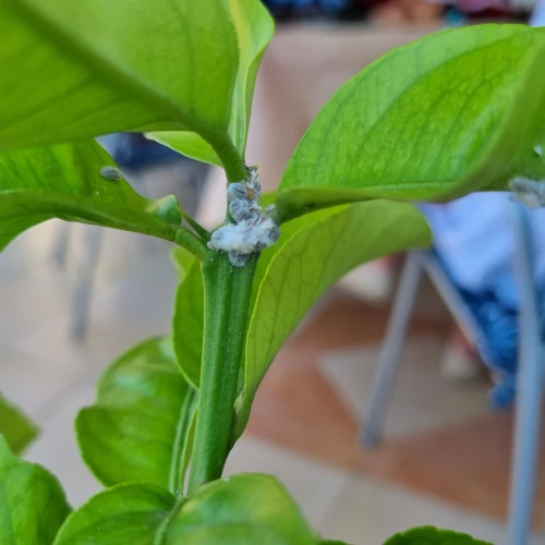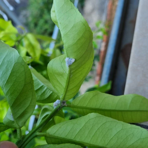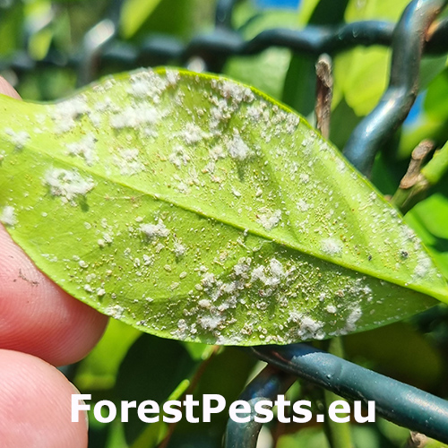 Planococcus citri, commonly known as the citrus mealybug, is a sap-sucking insect from the family Pseudococcidae. Native to Asia, it is now widespread across Europe, especially in greenhouses and ornamental plantings. It infests woody plants by piercing plant tissues to extract sap, weakening the host and reducing its vigor. It primarily attacks citrus, oleander, pomegranate, fig, and various ornamental shrubs grown in warm climates or protected environments. Females lay eggs in white, cotton-like ovisacs, and both nymphs and adults excrete honeydew, which promotes the development of black sooty mold that negatively affects the ornamental appearance of infested leaves and fruit. Populations can thrive year-round under stable greenhouse conditions, with multiple generations per year. It is a important pest in citrus plantations in the Mediterranean region of Europe.