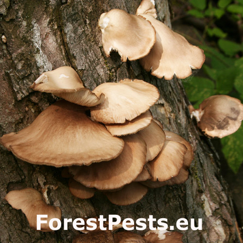 It is common on dead standing and fallen trees. For the infection usually wood or bark injuries are needed. The fungus slowly spreads through the wood, and causes white rot. Fruiting bodies appear after a longer a wet period. The mushroom has a cap spanning 5-25 cm broad, fan or oyster-shaped. Natural specimens range from white to grey or tan to dark-brown, with inrolled margin when young, smooth and often somewhat lobed or wavy. Flesh is white, firm, varies in thickness due to the position of stripe. The gills of the mushroom are white to cream, descend stalk if present. If so, stipe is off-centre with lateral attachment to wood.