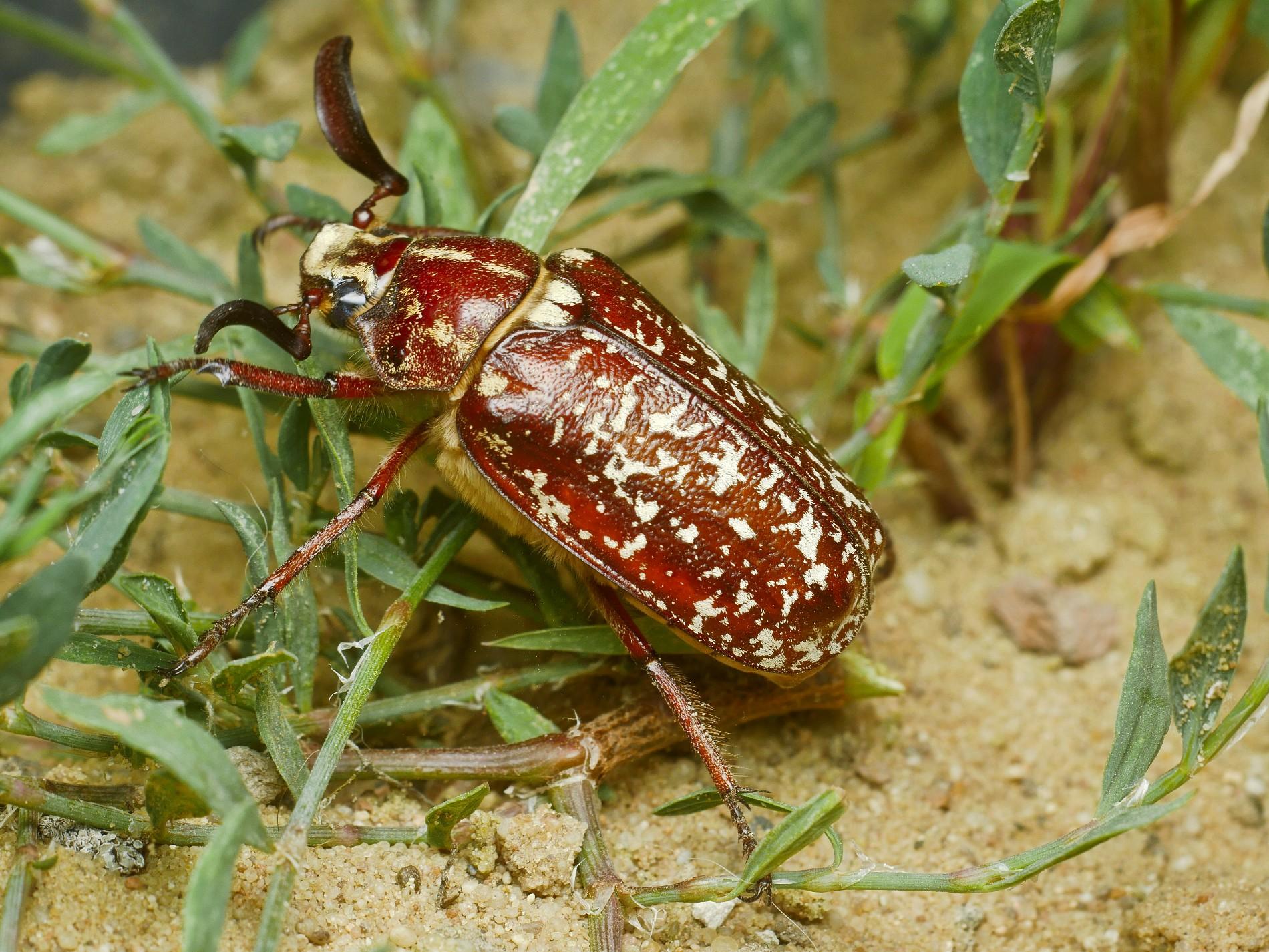 It is the largest European chafer, reaching up to 35 mm in size. It flies in June-July. The female lays eggs into light sandy soil, mostly in pine stands. Chafer grubs hatch in about a month. They feed on plant roots, often especially on the roots of pine seedlings. Larval development reaches 3 years. Fully developed grubs pupate in June deep in the soil. During the swarming period, adults feed on young pine needles. It occurs only locally, but it can be common in some localities.