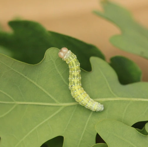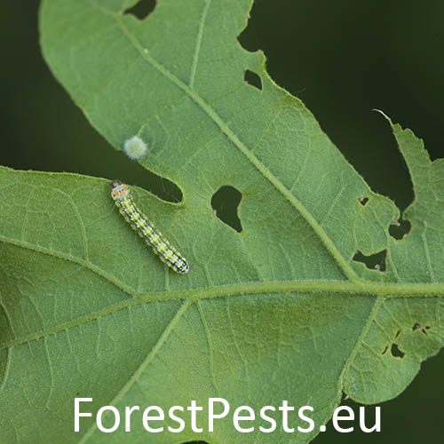 Young larvae live in spun leaves, later they live solitary feeding on oak leaves. It can be found from May to June. Adults are on the wings in one generatioin in early spring - from March to May. The species is quite common in oak forests.