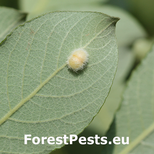 This gall sawfly causes more or less globular, light greenish, densely hairy galls (ca. 4–5 mm in diameter) on the underside of the leaf. Galls can be found from May to Autumn. The gall contains one larva. The influence on tree health status is negligible. This species occurs frequently in North and Central Europe.