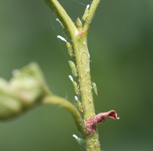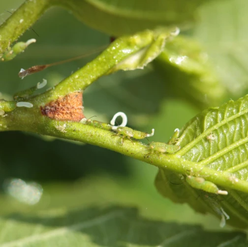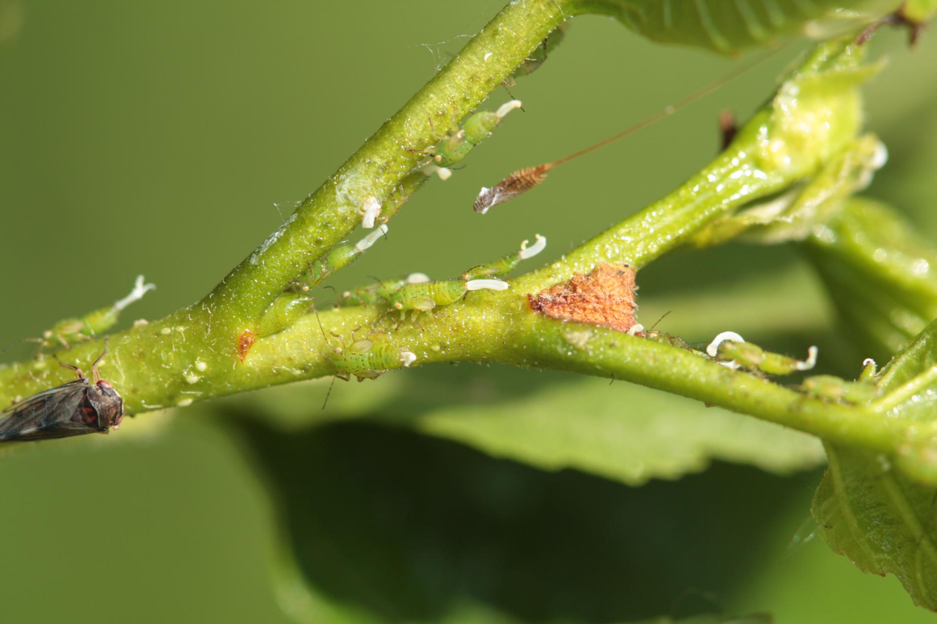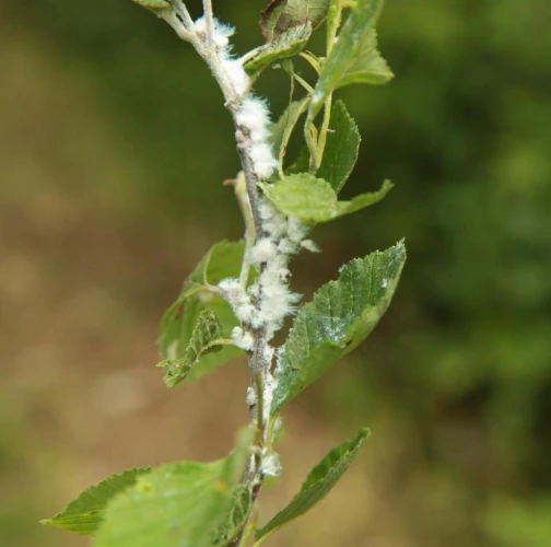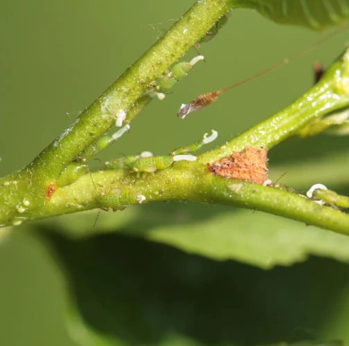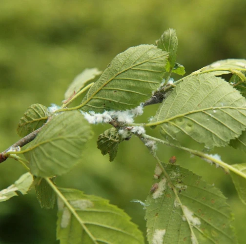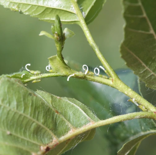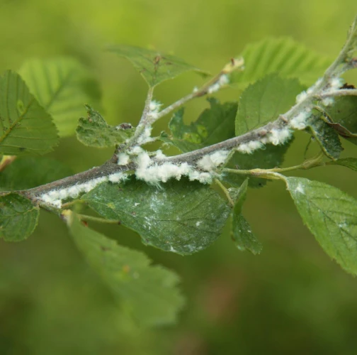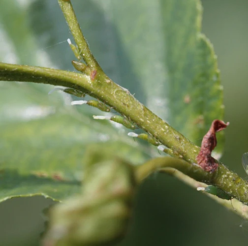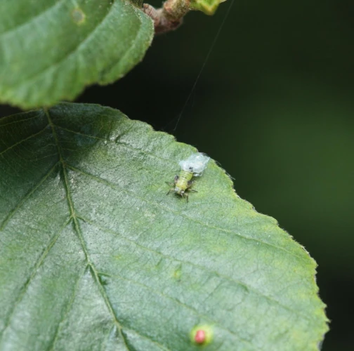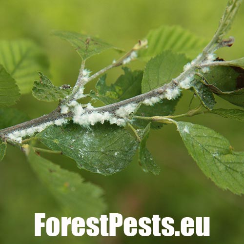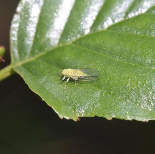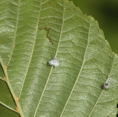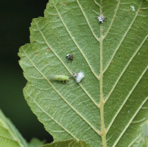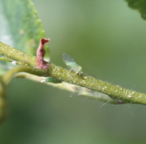 Psylla alni is an insect that is about 5-6 mm long. The images are initially green, later becoming orange, brown or reddish. Nymphs are usually covered with white cotton like wax.
