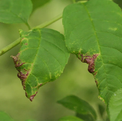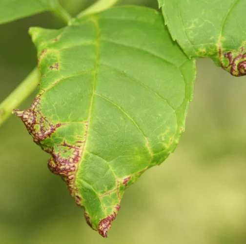 Deformations at the edges of flesh-colored leaves.
