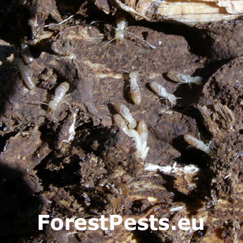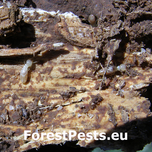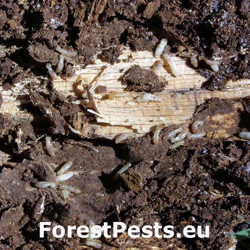 In Europe, there are other related species, such as Kalotermes flavicollis (family Kalotermitidae) and Reticulitermes grassei (family Rhinotermitidae).