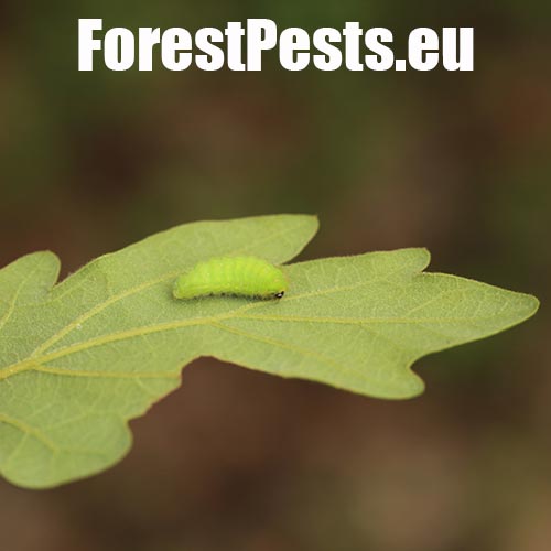 Adult 22-30 mm in span, the upper side dark brown with a patch of orange scales on forewings (female with more conspicuous one) and with a small orange spot in the bottom corner of the hindwing. The outer edge of the hindwing has a line of separate orange spots and there is one short tail on the hindwings. Larva 15-18 mm in length, very domed anteriorly mainly, higher than wide. Colour green with indicated dorsal line and skewed lines laterally. Prior pupation, larva turns colour to reddish. Head is black. Larva feeds on Quercus spp., mainly on young and bushy specimens. Pupa on branches, girded by silk. Forest steppes, edges of warm oak stands, in warmer regions. Locally not rare.