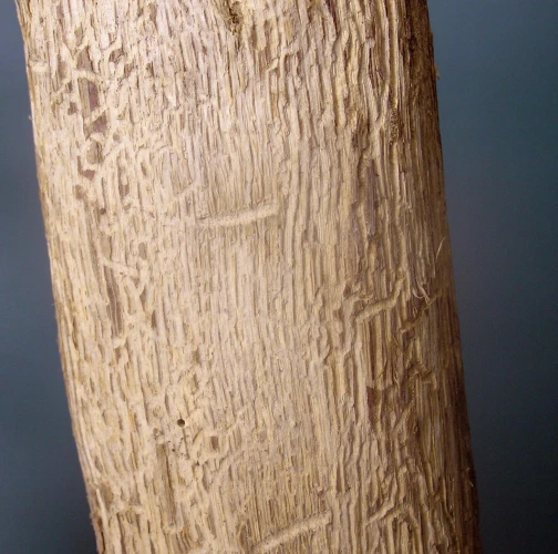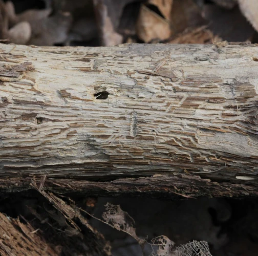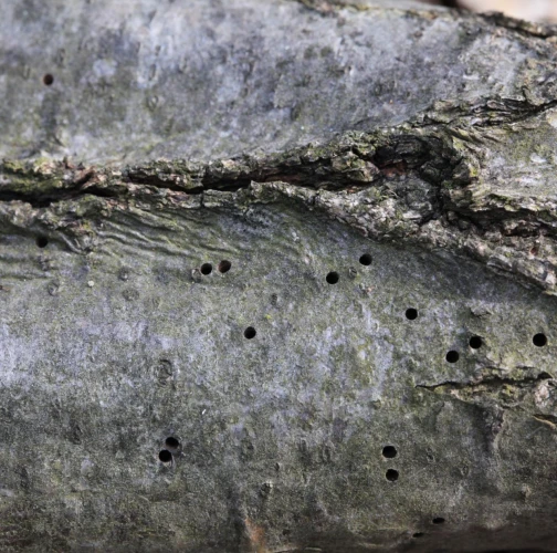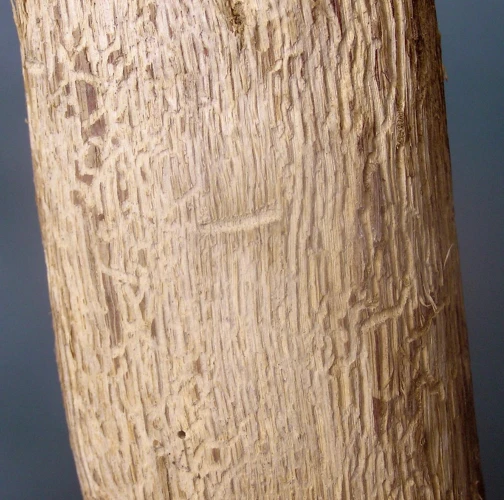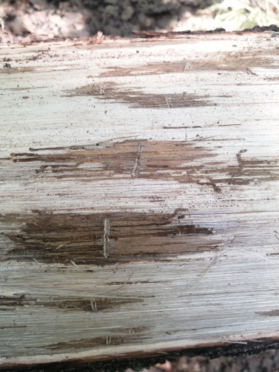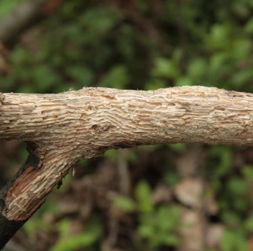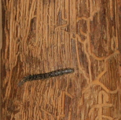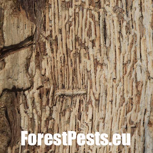 Gallery under the bark. Short horizontal maternal gallery, which is only 1-2 cm long.
