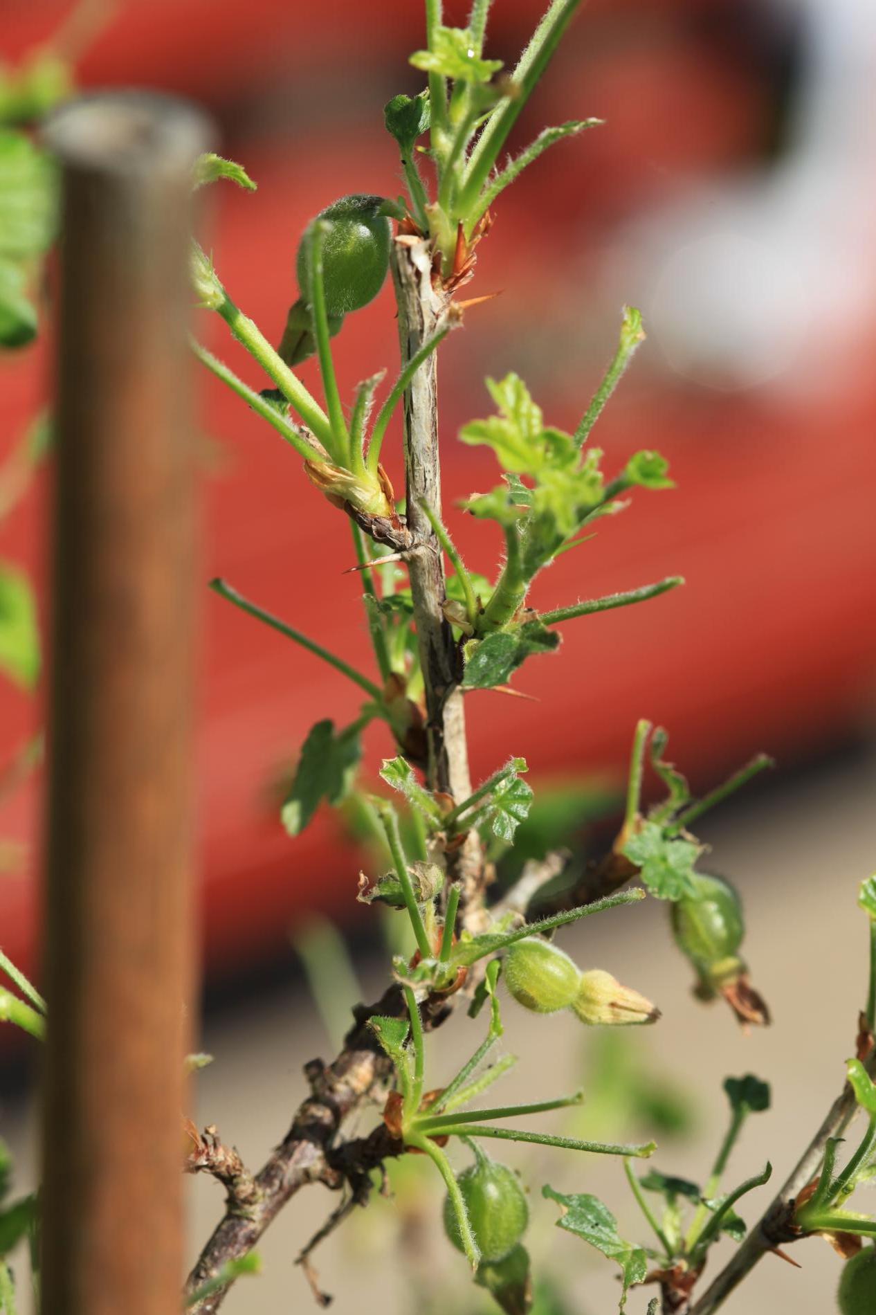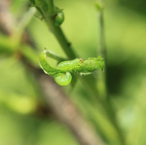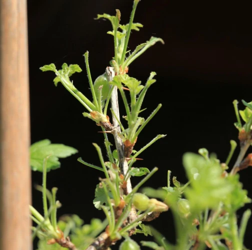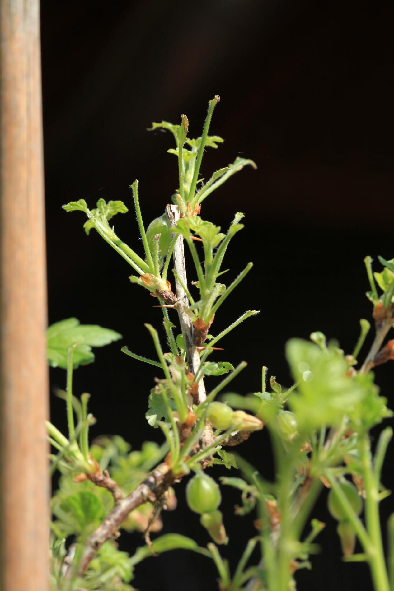 Infestations by Pristiphora appendiculata result in severe defoliation of currant and gooseberry plants, with larvae rapidly skeletonizing the leaves, leaving only the veins intact.