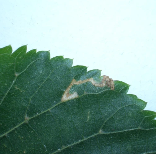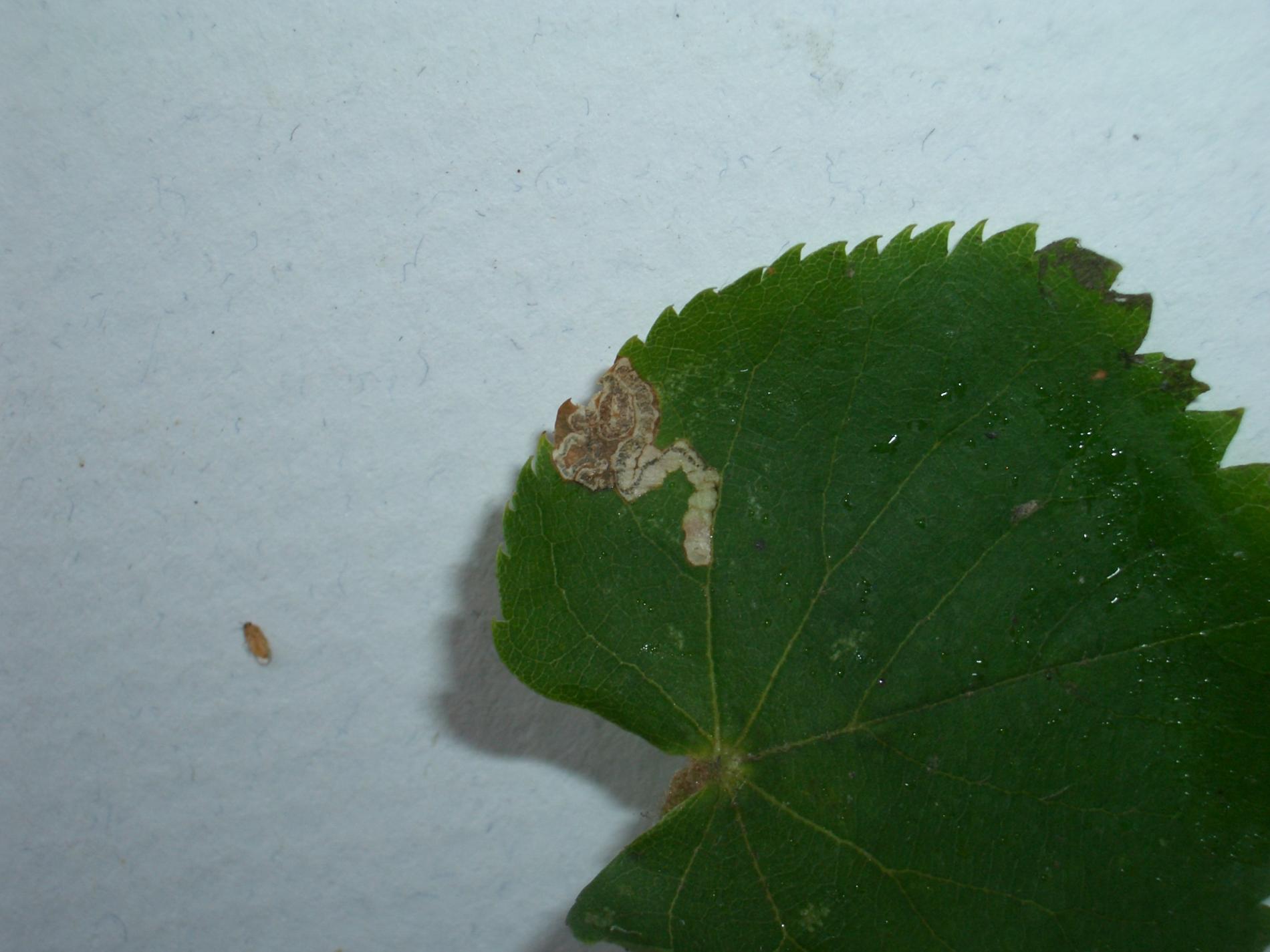 Stigmella tiliae, known as the lime pigmy moth, is a member of the Nepticulidae family found throughout Europe, excluding the Balkan Peninsula and Mediterranean Islands. This species primarily infests lime trees (Tilia cordata, T. platyphyllos, T. americana, among others) where its larvae mine the leaves. The lifecycle includes two generations, with adults active from May to August and larvae present in July, and again in September to October. The larval mines are gradually widening corridors, starting as faint lines on the leaf's surface and eventually penetrating the entire leaf depth. Frass is generally in a narrow central line but can sometimes be widely dispersed. While Stigmella tiliae mines don’t typically impact the health of the tree, they can reduce the visual appeal by creating noticeable marks on the leaves.