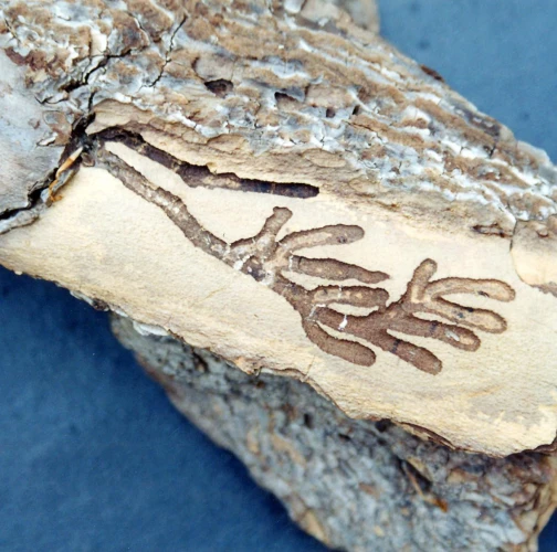 The feeding trace in wood.