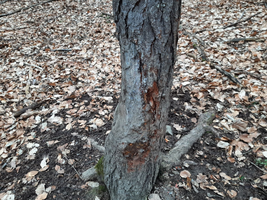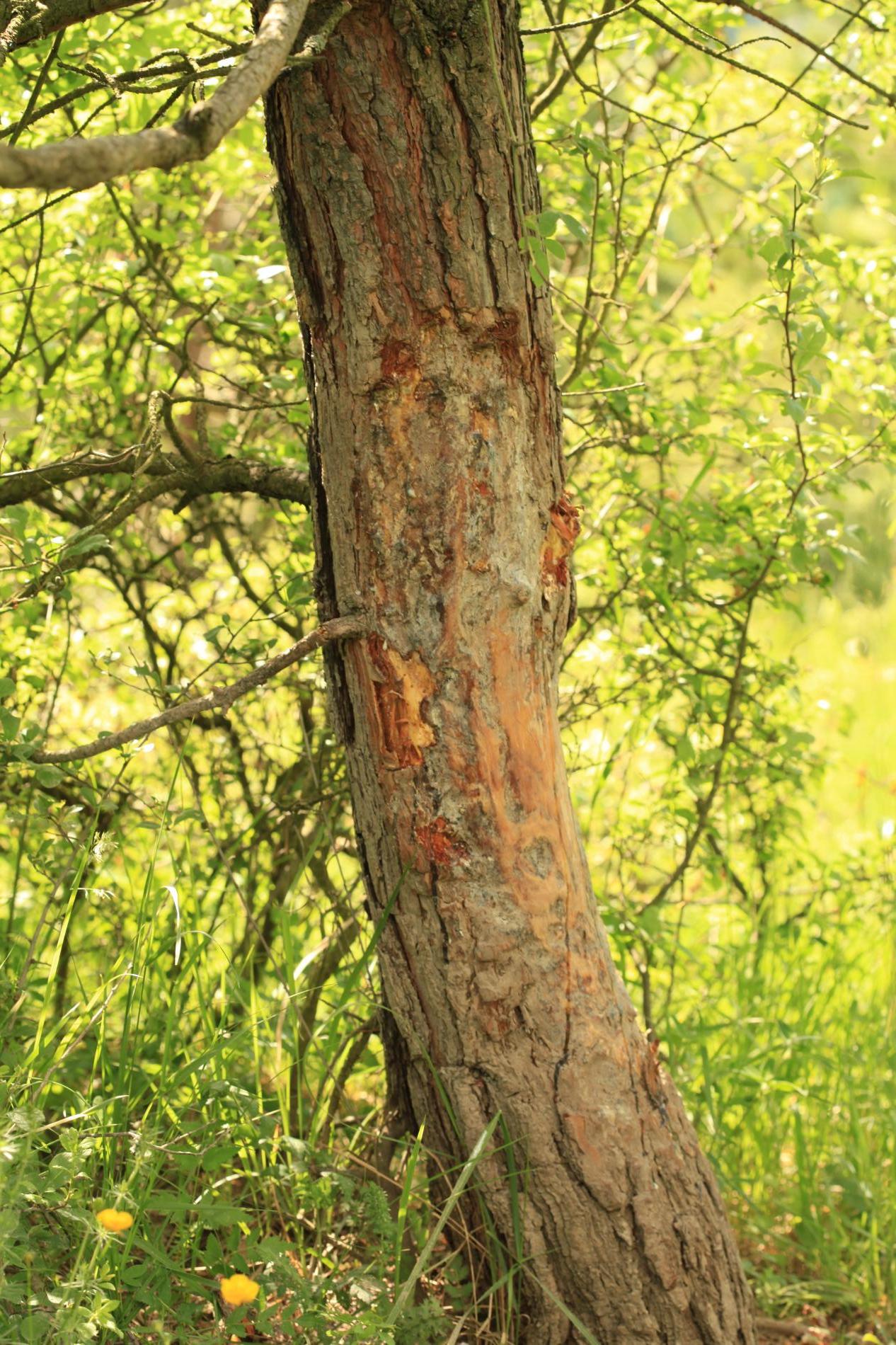 Woody plants with a rougher bark are more often damaged. Other types of game (roe deer, fallow deer, and mouflon) cause similar damage.