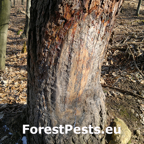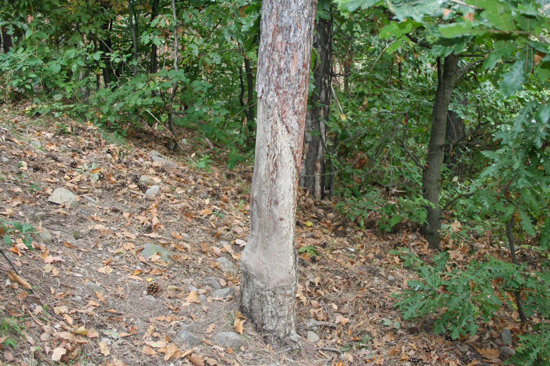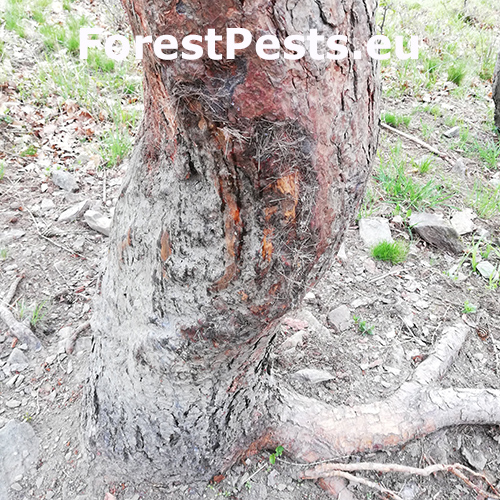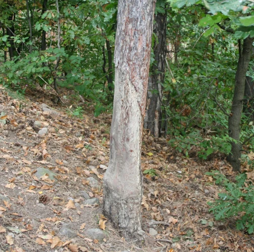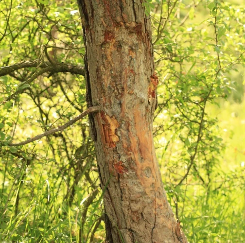 Trees are damaged by abrasion The damage occurs at any time of the year, less in winter.. Near the pools, the game rubs against the trunks of surrounding trees, thus getting rid of parasites in its fur. Using the same trunks for many years, the bark and bast is ripened to the sapwood, with a subsequent disposition for secondary damage, especially by fungal pests. During multi-year abrasion, the bark and bast are removed up to the sapwood and calluses forms.