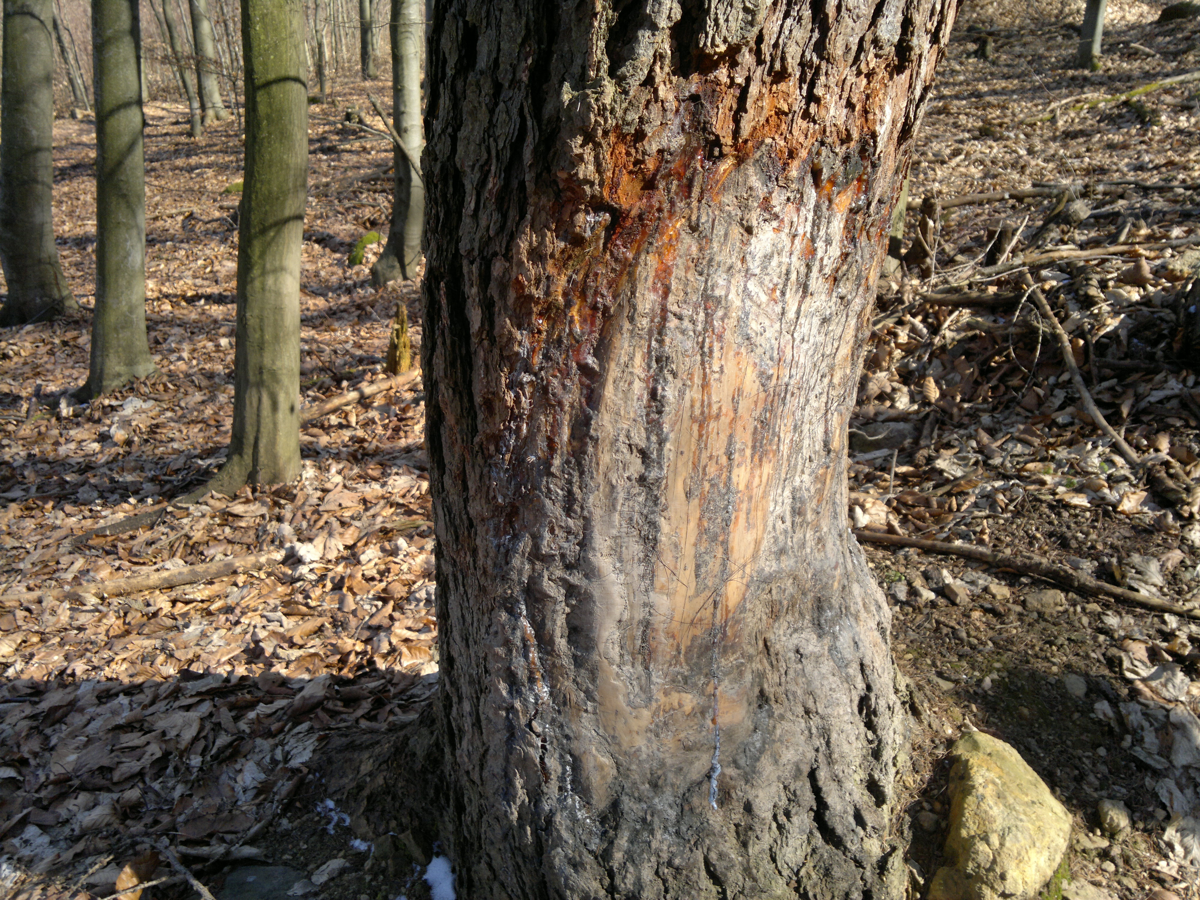Most damaged used to be an older stands near the pools that the game visits. Damage occurs locally in stands, often on individual trees.