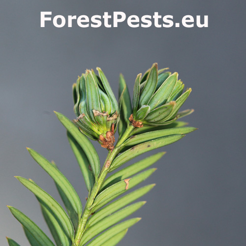 This gall midge has a two-year cycle. In May/June the gall midges deposit their eggs on the leaves or buds of yew. The larvae burrow into the bud, where they spend the first winter. Infested buds look no different from healthy ones at this stage. In May of the second year, they start to develop into 1-3 cm long artichoke-like galls. The 3rd instar larvae overwinter in the buds and pupate in May. A small fraction of the population is univoltine, with the artichoke gall already forming in the first year. They have no impact on the few autochthonous yew stands in Central Europe. Where yew is an ornamental in gardens, parks and tree nurseries, the galled shoots may impact the ornamental value, especially as they turn brown after the midges have left. The preferred habitats are gardens, parks and tree nurseries.