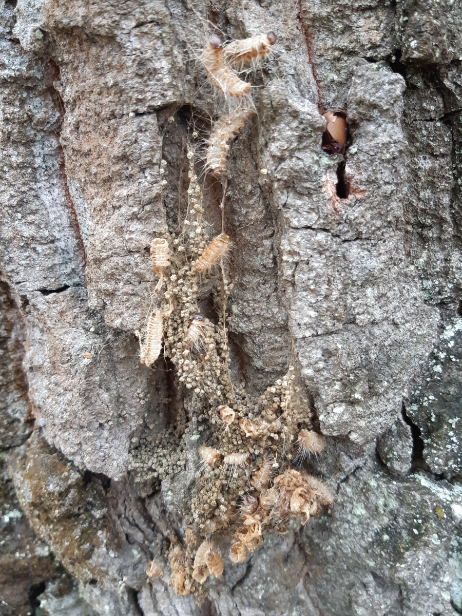 This species is characteristic for the larvae living together in web nests on tree trunks. They crawl out for food, moving one after another in a row, sometimes even several meters long. They pupate in the nest or at the tree base in a cocoon.