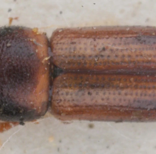 The beetle is 2.5–4 mm long. It attacks languishing, weakened trees, cut down trunks and fresh stumps in forests situated in moist localities. It pushes small whitish wood debris out of galleries. It swarms in March and April. Mating takes place on the surface of the bark after which the females bore into the log to form galleries. The females lay eggs in a typical ladder-like gallery. It belongs to the so-called ambrosia beetles. The larvae need the fungus Trichosporium ferrugineum for their development. It grows inside the larval chambers, its hyphae and spores are a component of food for both larvae and adults. Widespread everywhere in coniferous forest in mountainous areas.