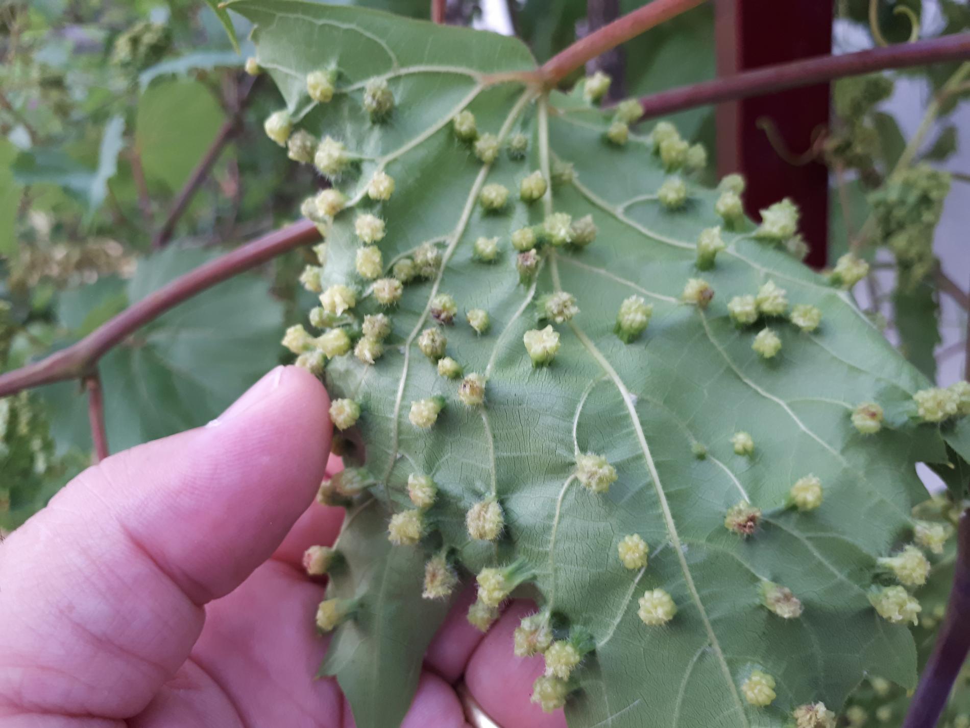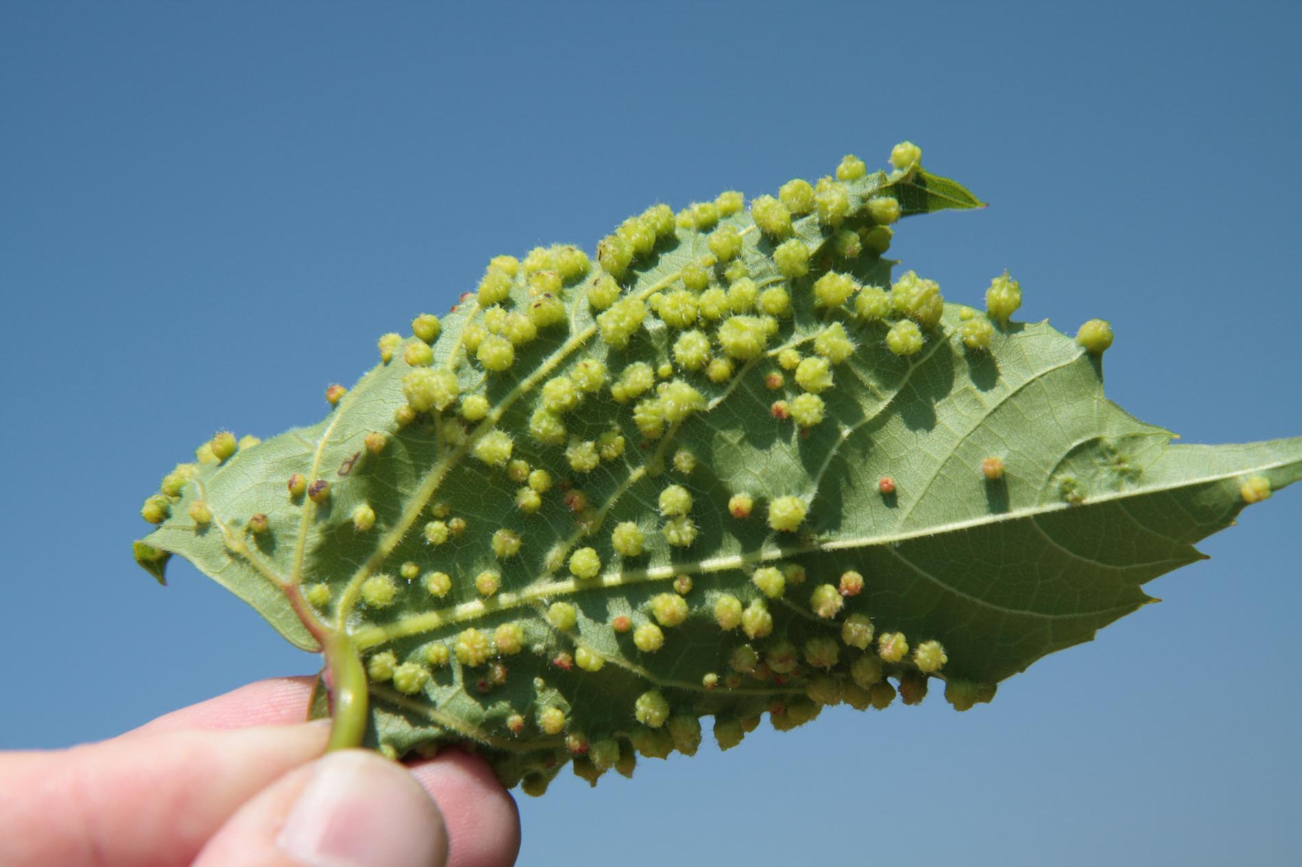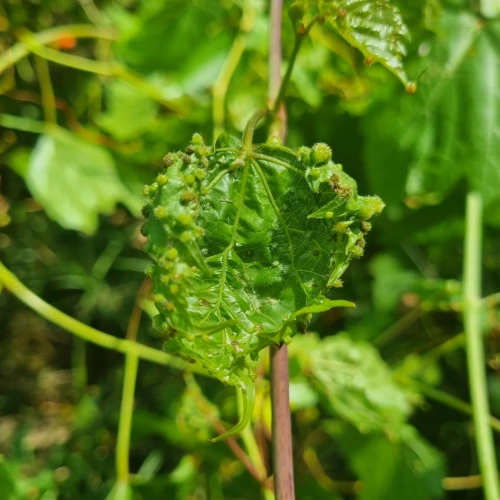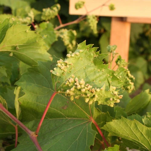 Small bumps – galls - or irregular growths on the surface of young leaves, caused by the feeding activity of the phylloxera larvae. Gall-like formations on the roots, resulting from the feeding of the phylloxera nymphs, which can lead to root decay and eventual vine death. Overall weakening and decline in the vigor of the grapevine, manifested by stunted growth, reduced yield, and eventual vine death in severe cases.