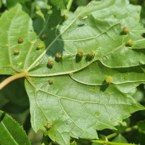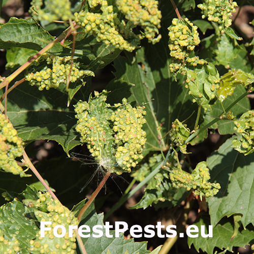 This species forms galls on leaves by laying eggs on the surface of young leaves, resulting in typical gall formations. Additionally, it also induces gall formation on roots. These formations lead to vine decay over several years. Control measures include destroying infested vineyards, cultivating resistant vine varieties, growing healtly plans, and doing regular treatments. Grape phylloxera causes damage in both larval and adult stages. Despite control efforts, it remains a significant threat to grapevine cultivation, particularly in regions where susceptible varieties are grown.